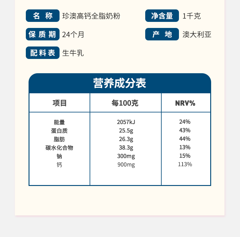 Au Kingcare 珍澳高钙全脂速溶奶粉卡扣装