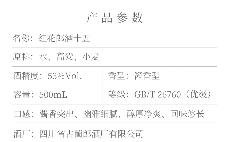 郎酒 红花郎15年第四代53度 酱香型 500ml*1瓶