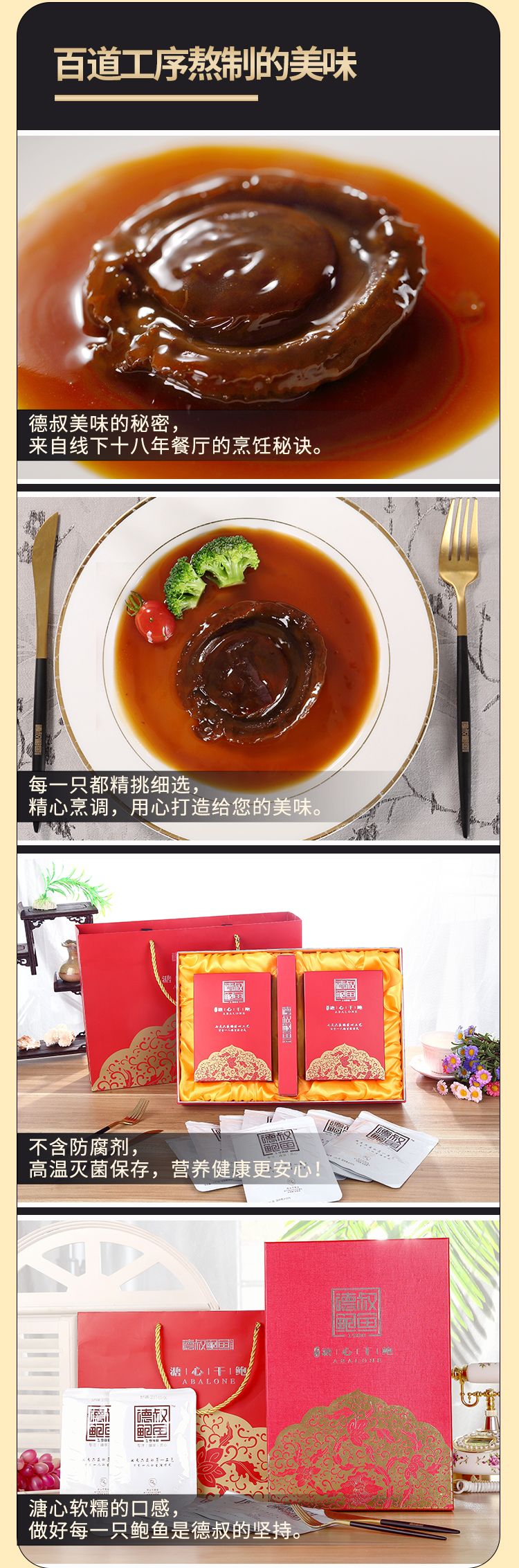 【常温储存】德叔手工熬制10头溏心干鲍1只袋装*4袋礼盒款(含鲍汁)