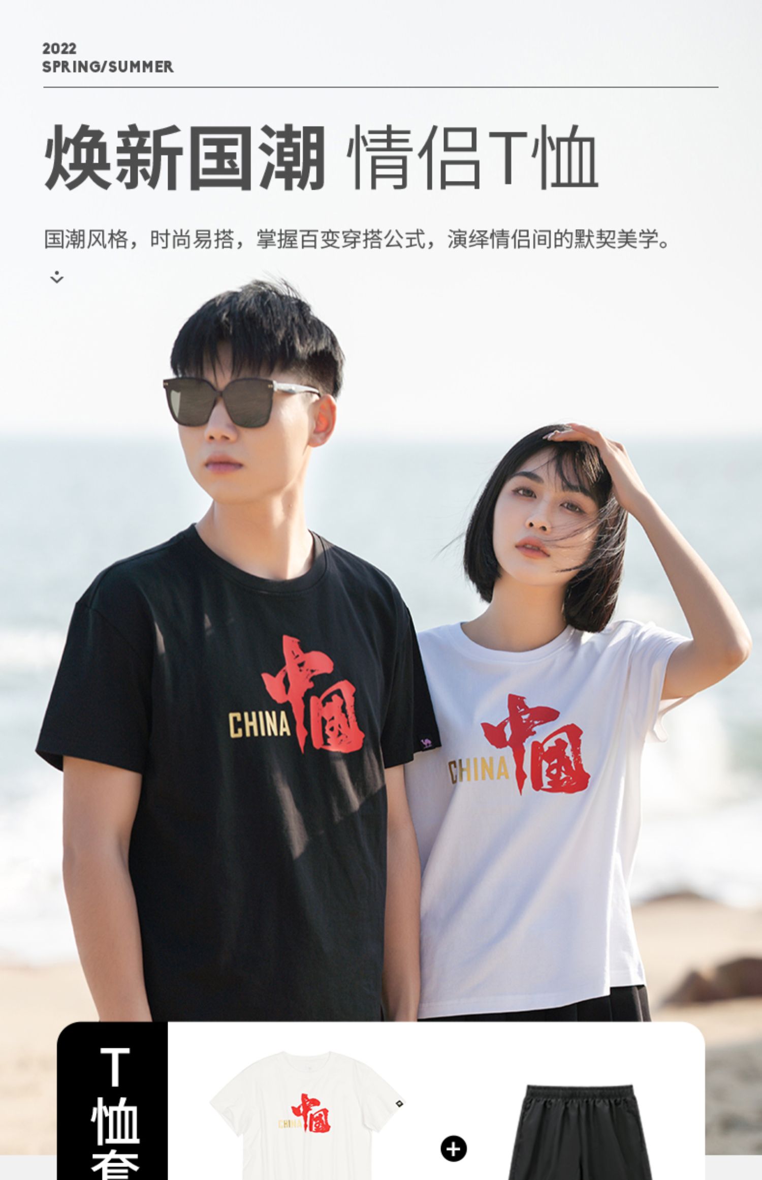 骆驼男装情侣套装夏季国潮短袖新款速干衣服休闲时尚跑步T恤短裤 ZB100047_ZB100048