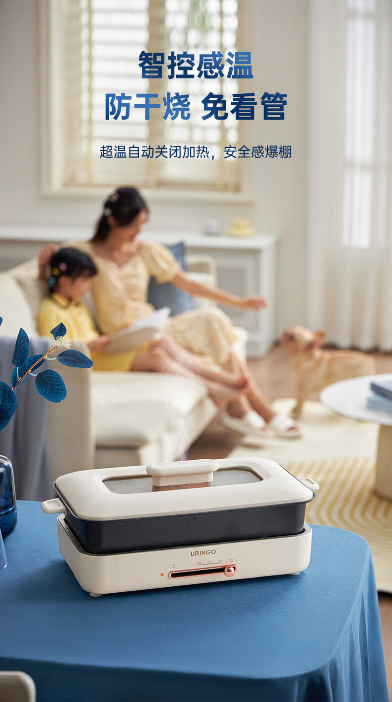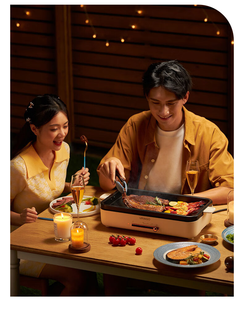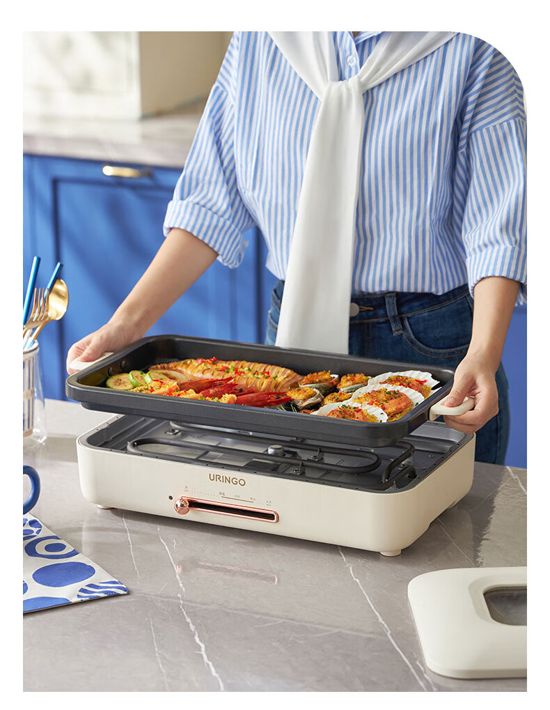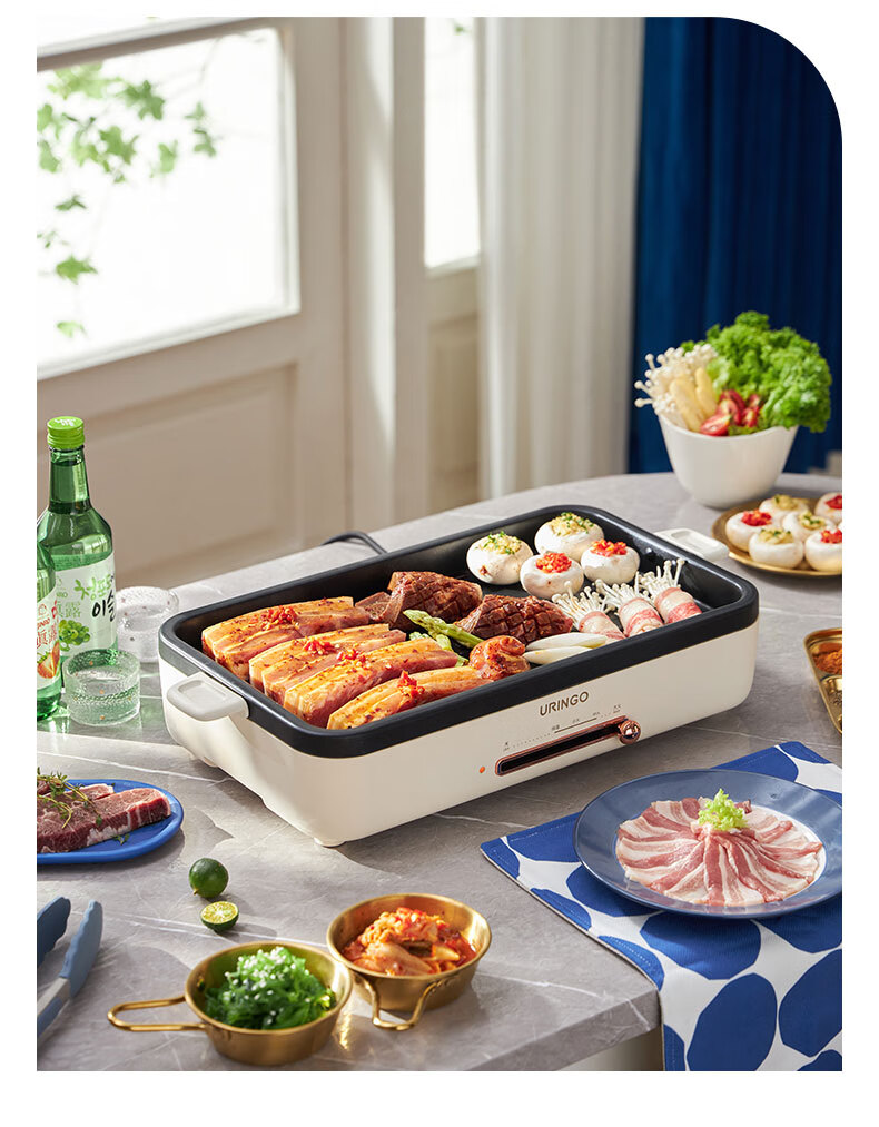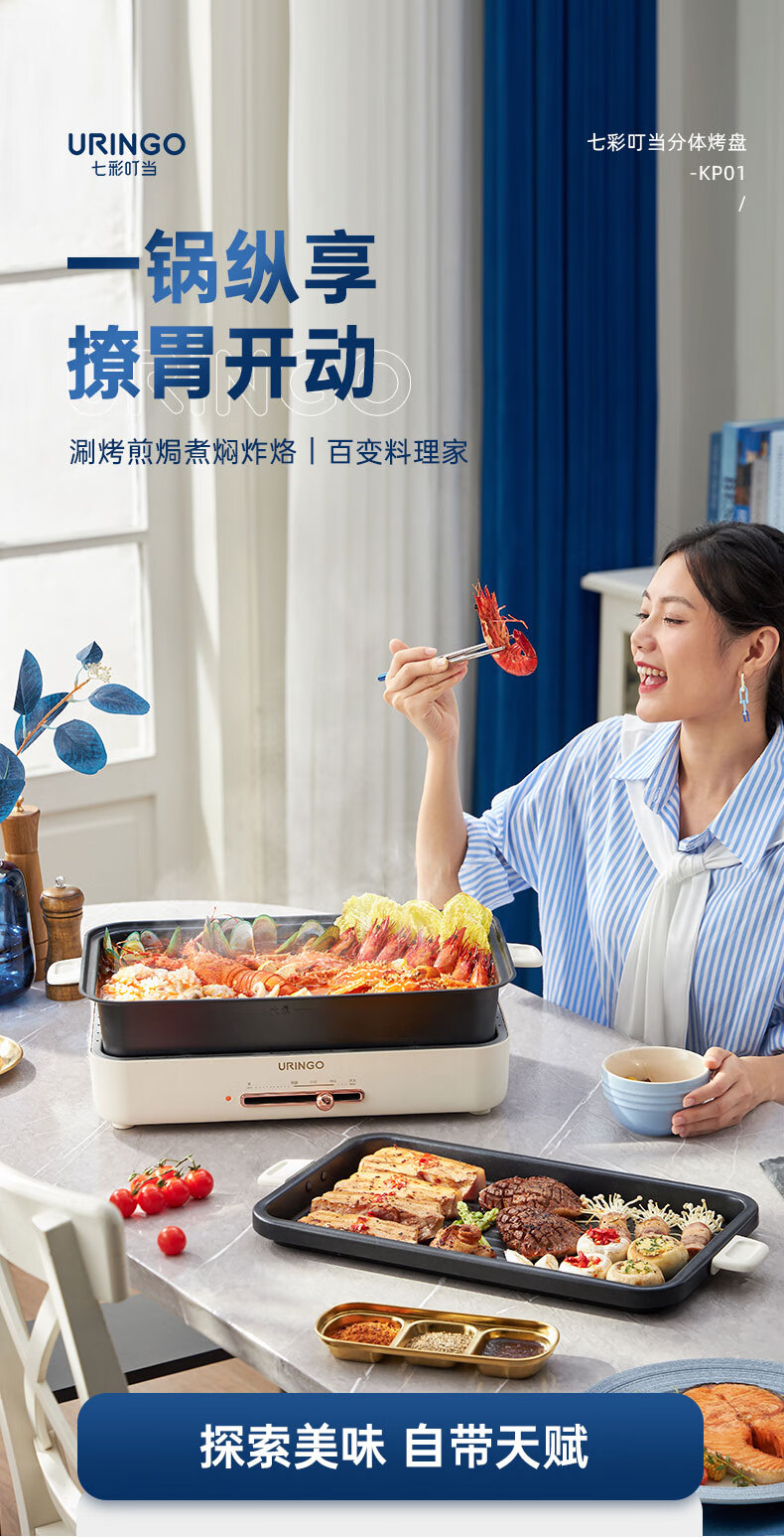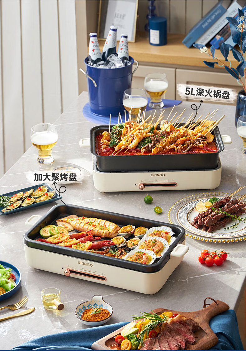 LR七彩叮当URINGO电烧烤炉家用无烟3-6人烤肉锅烤肉盘