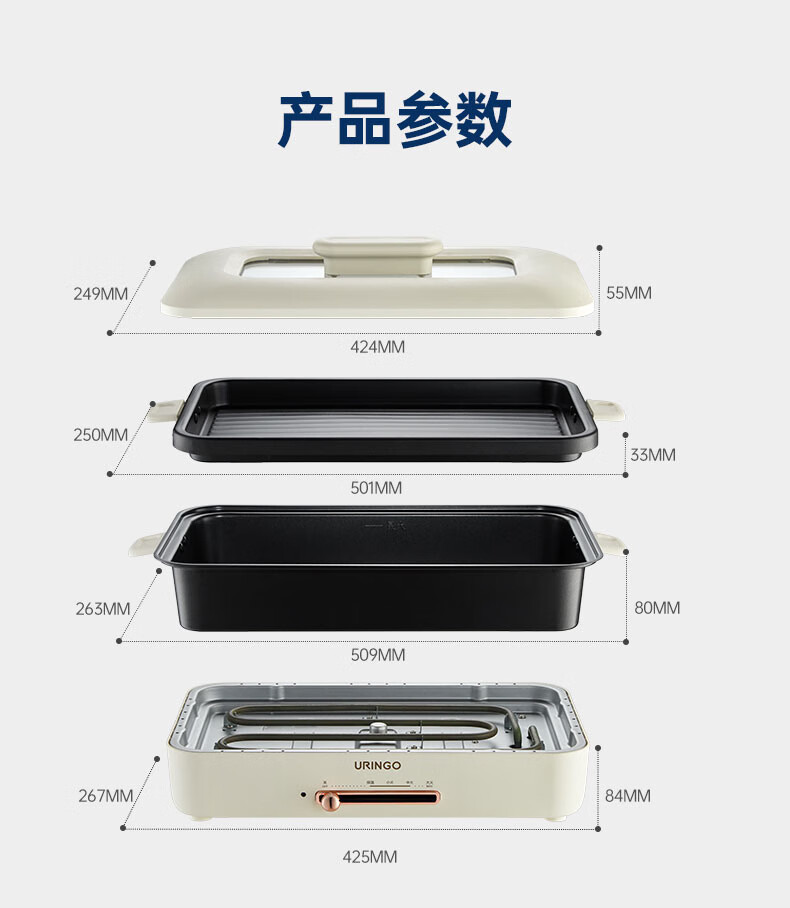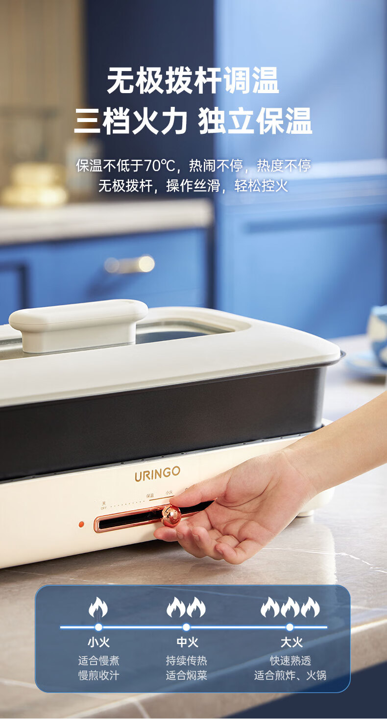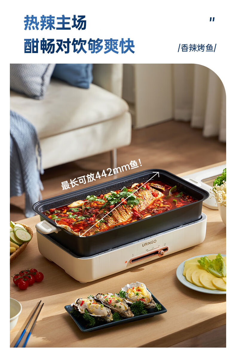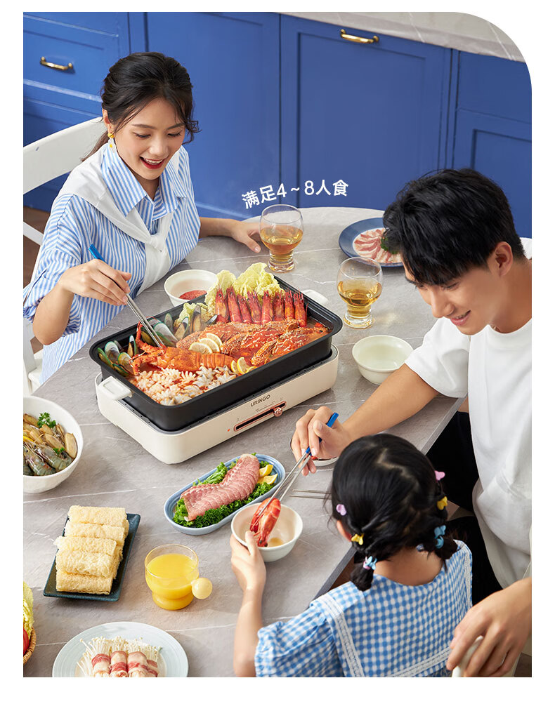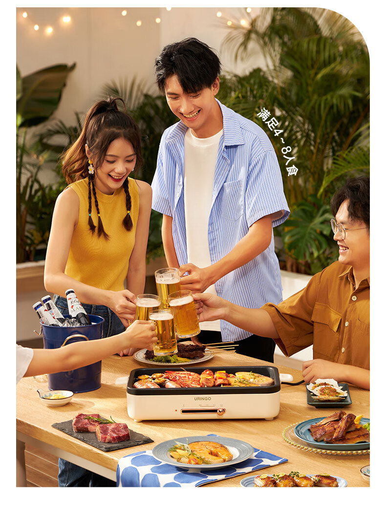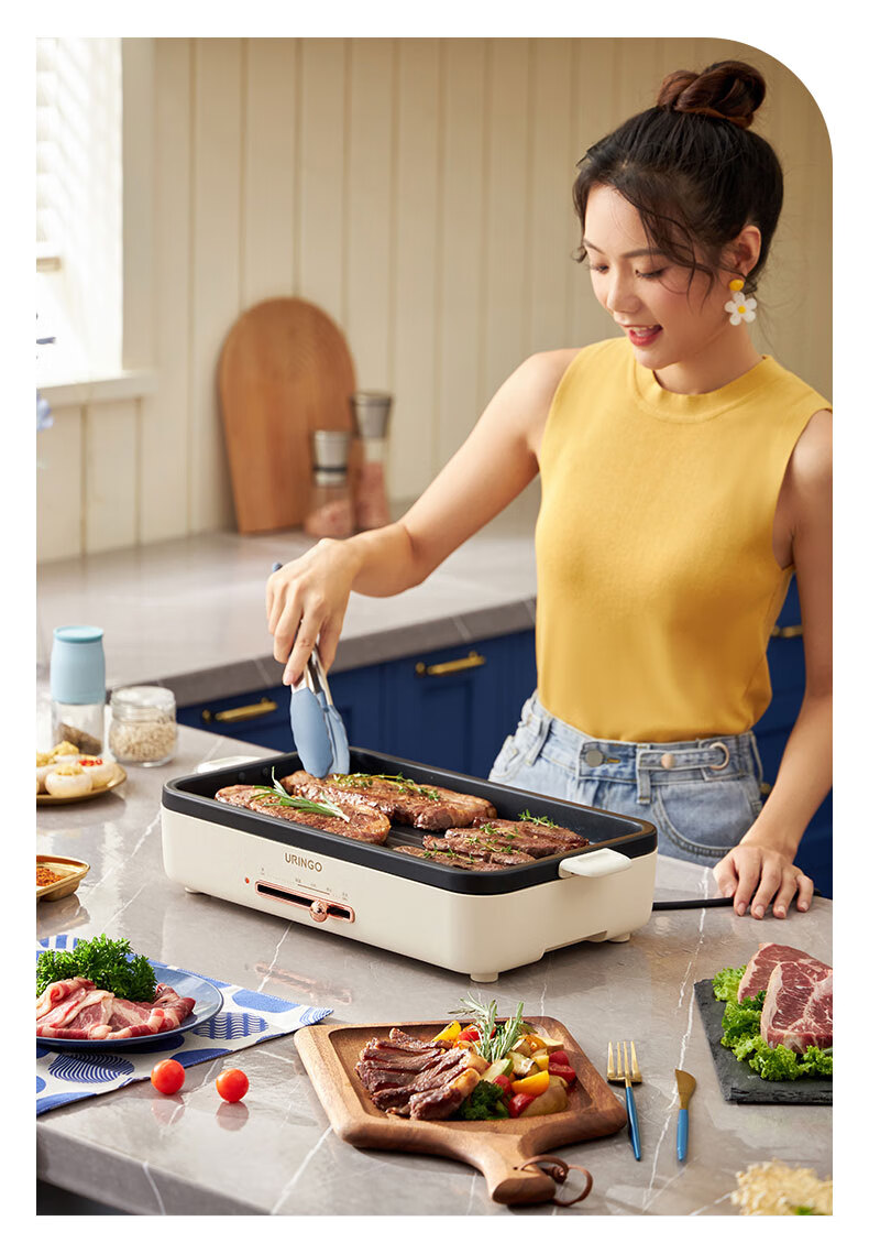 LR七彩叮当URINGO电烧烤炉家用无烟3-6人烤肉锅烤肉盘