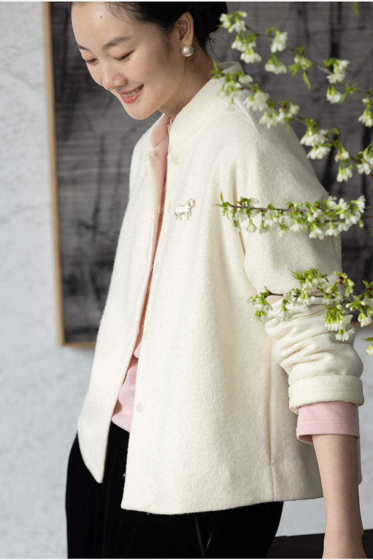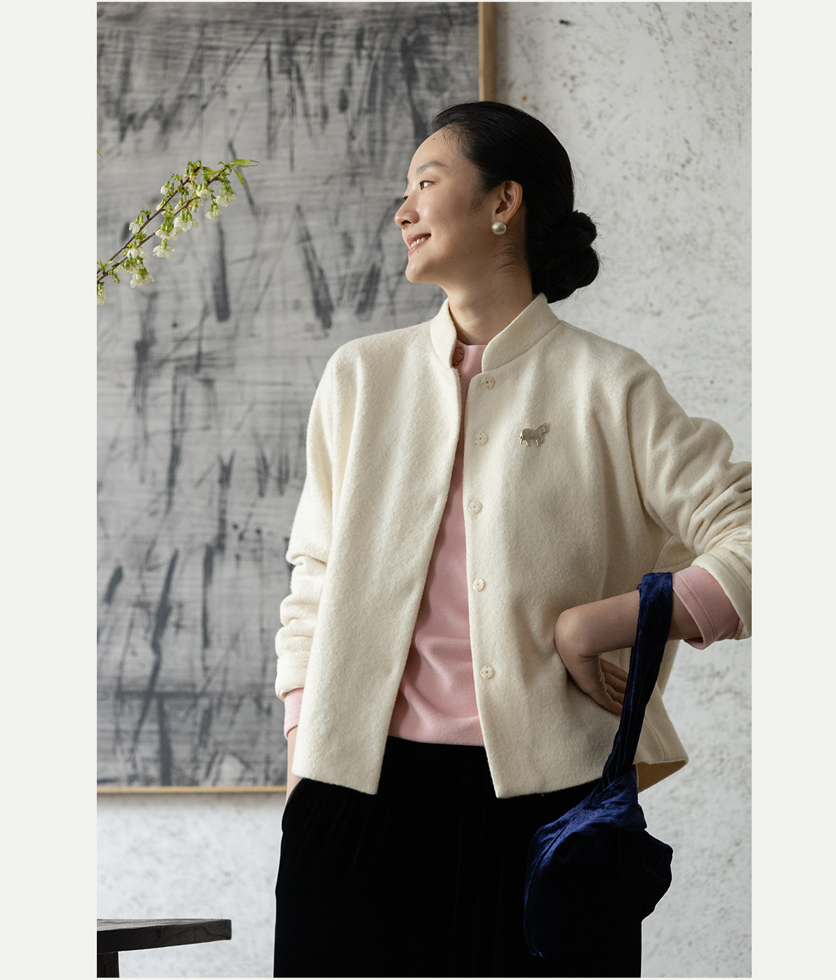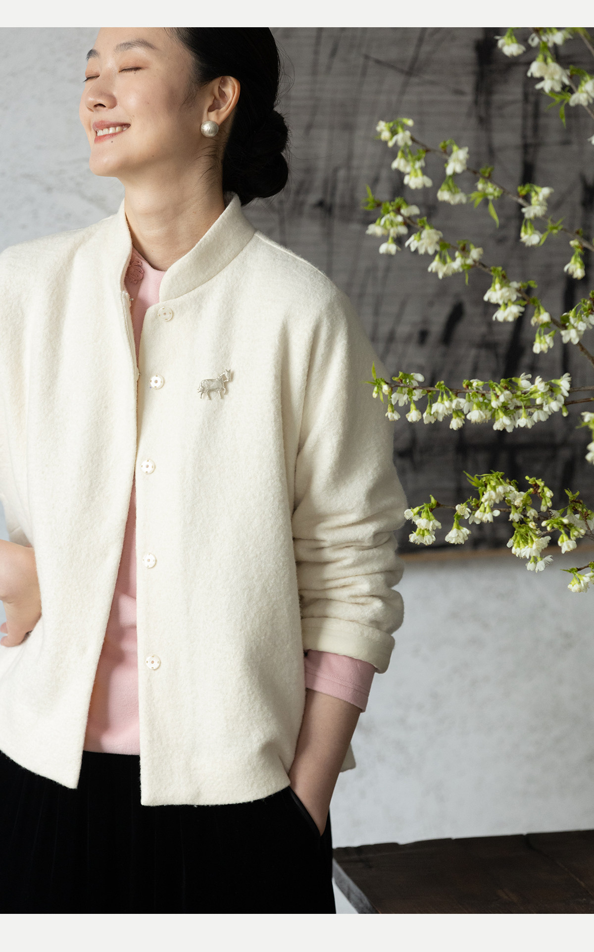 牧衣游原创 羊毛混织毛呢外套春季新款软糯轻盈舒适文艺开衫 理赏