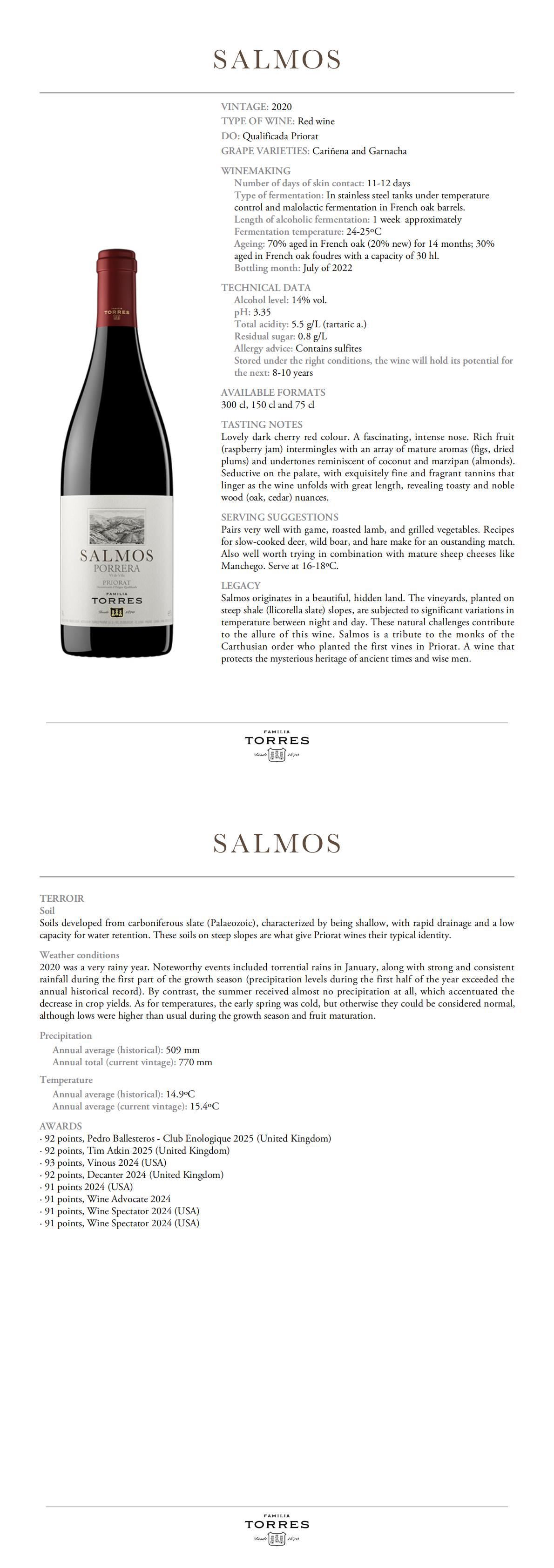 桃乐丝圣歌红葡萄酒Familia Torres Salmos, Priorat DOQ