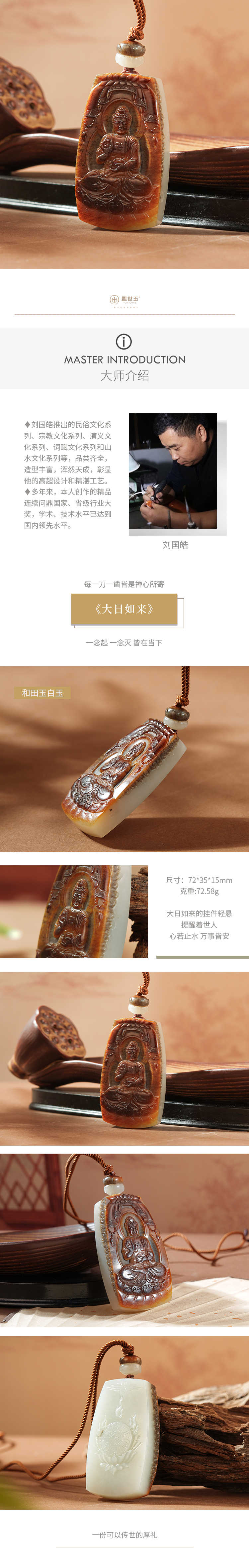 新疆国玉盟世玉和田玉挂件 万德旭老师作品 大日如来