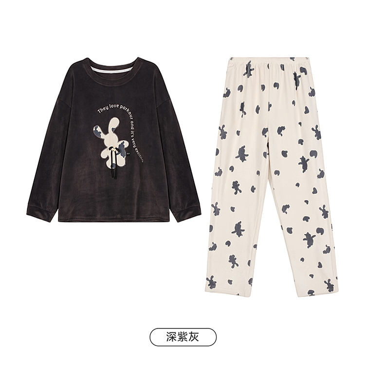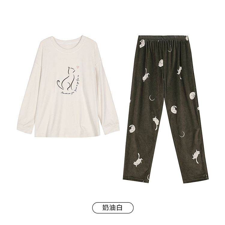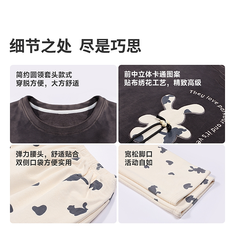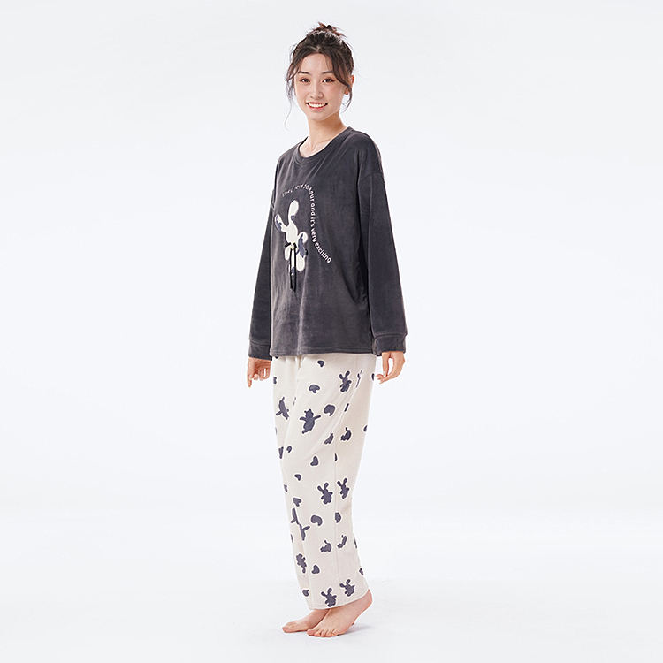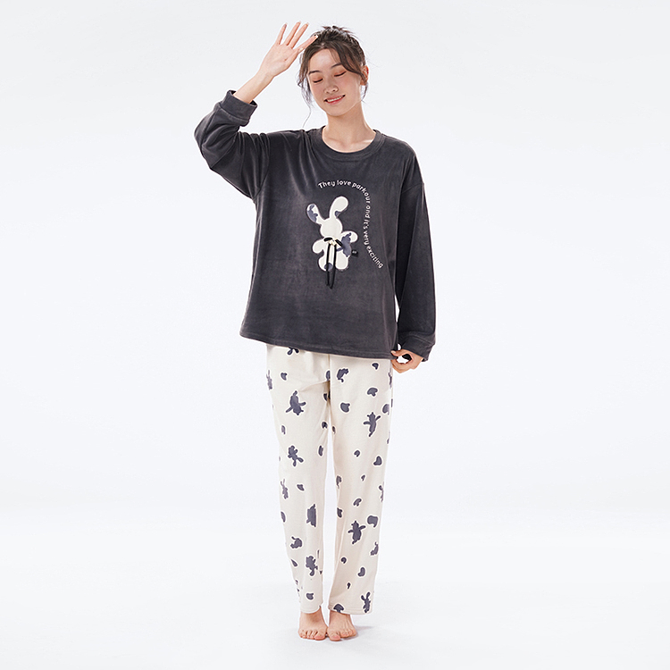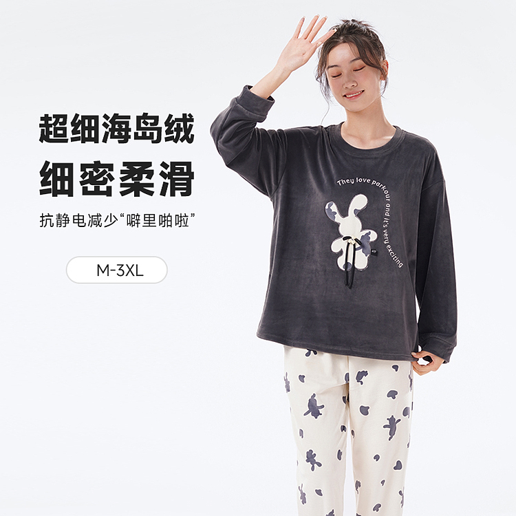 都市丽人睡衣海岛绒睡衣女士家居服长袖长裤海岛绒套装LHH2M6