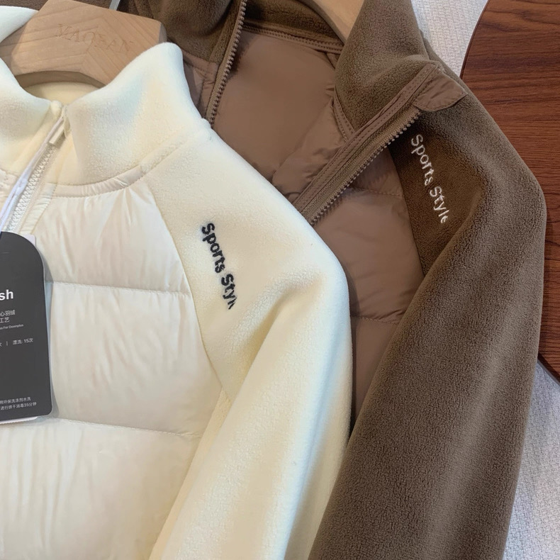 门襟拉链既保暖又方便 袖子奥利绒拼接 软软糯糯 时尚又保暖