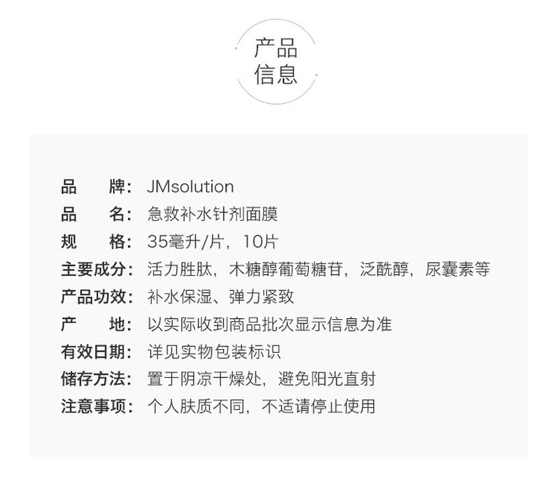 JM肌司研 急救补水针面膜 10片/盒