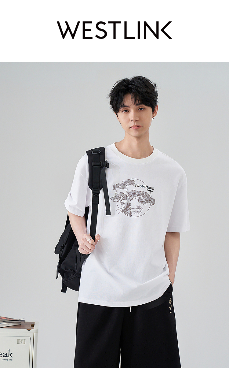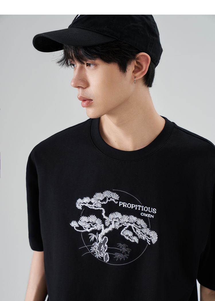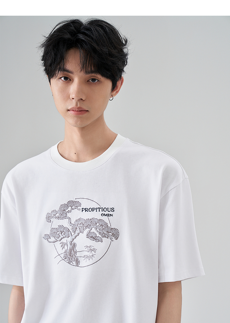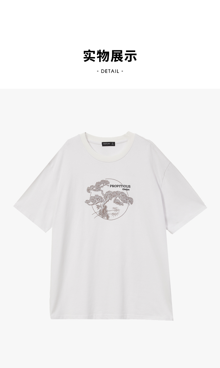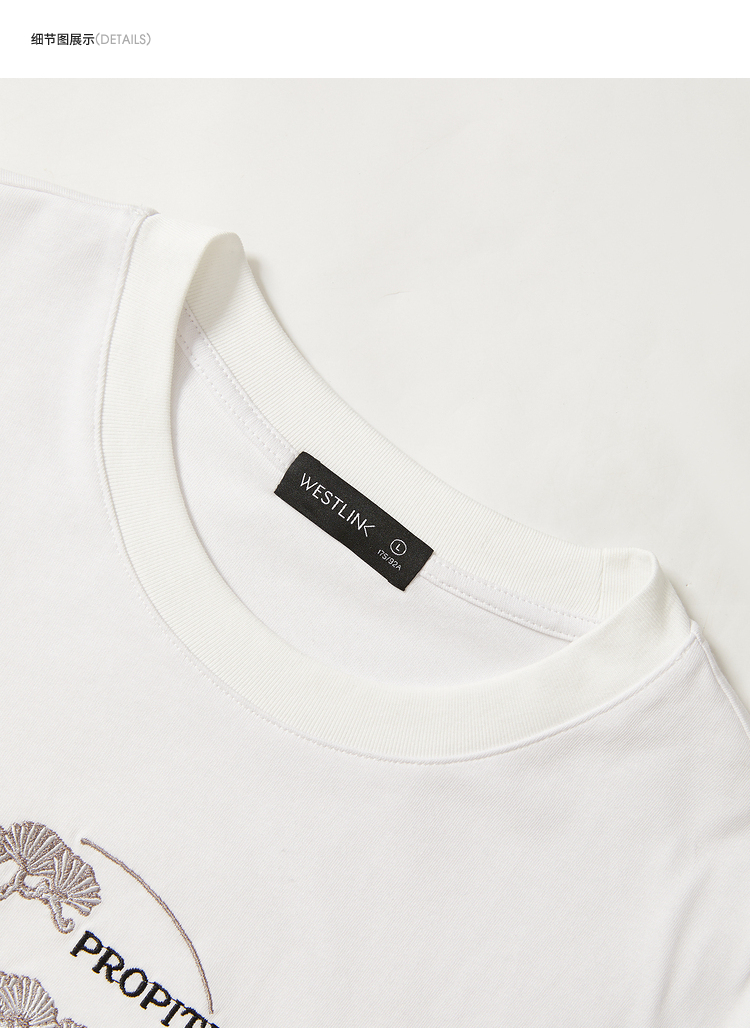 西遇国风精致绣花圆领男士T恤早春新款百搭简约宽松短袖上衣12545820