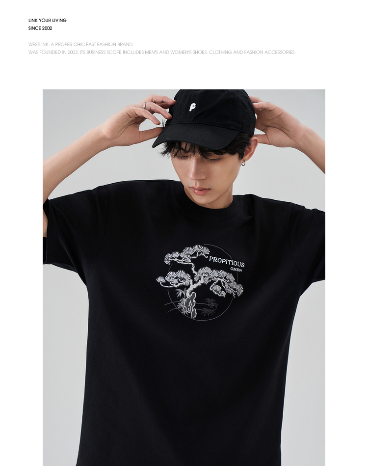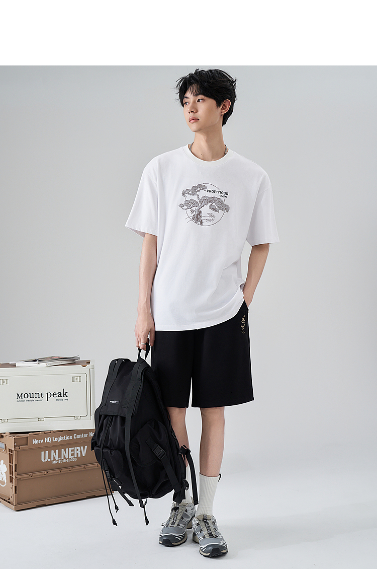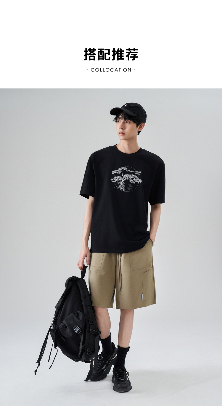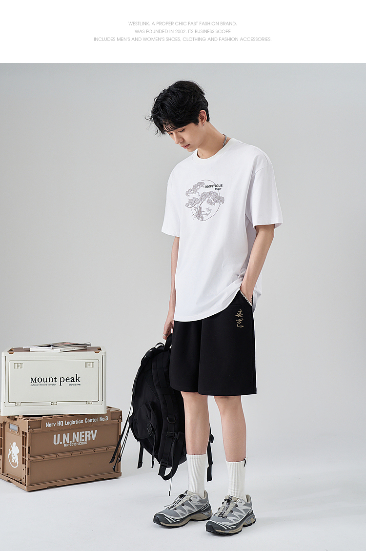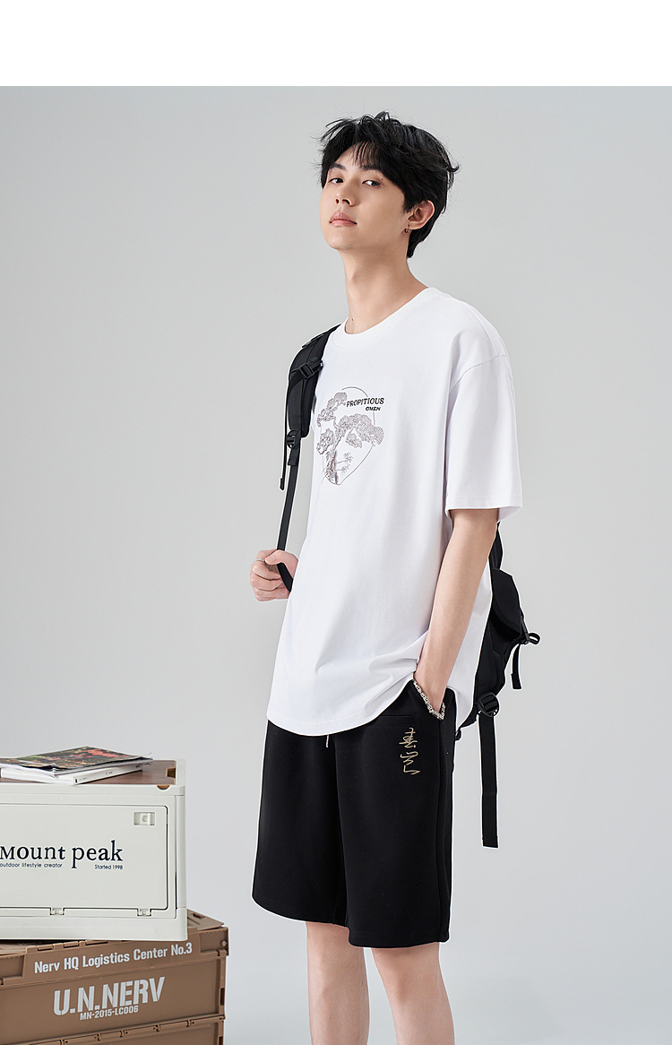 西遇国风精致绣花圆领男士T恤早春新款百搭简约宽松短袖上衣12545820