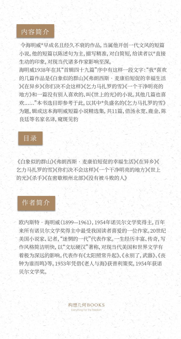 【No.10小说药丸】乞力马扎罗的雪