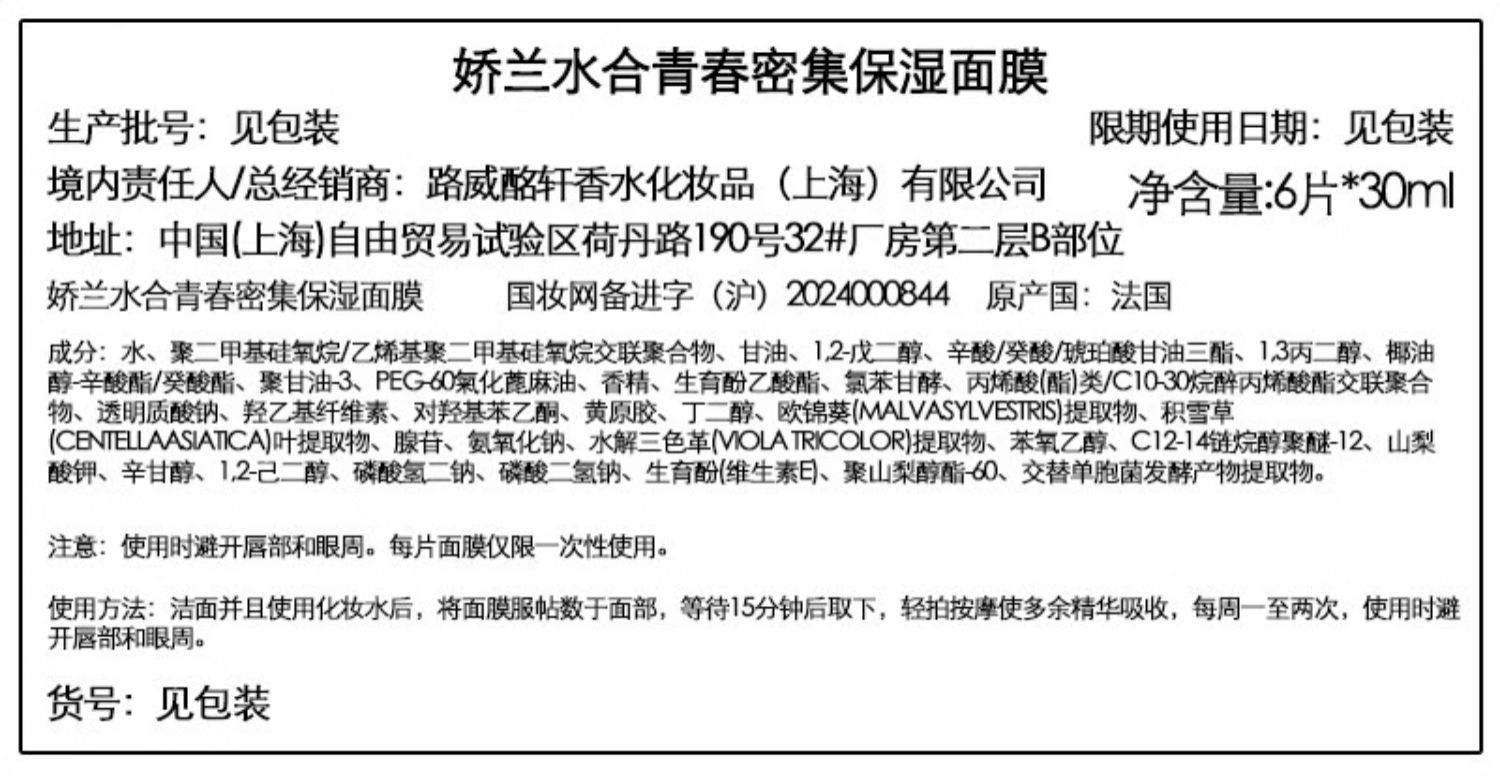 娇兰 水合青春密集保湿面膜6片 保湿抗皱紧致护肤