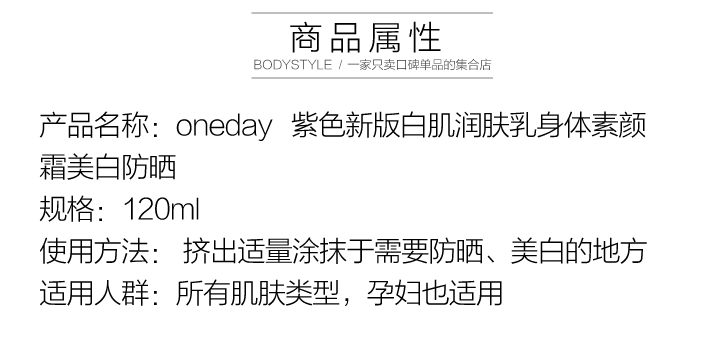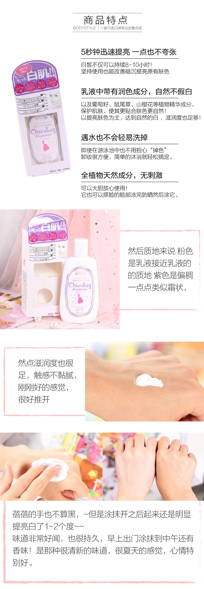 oneday 白肌润肤乳身体素颜霜润白防晒 120ml(紫色新版)