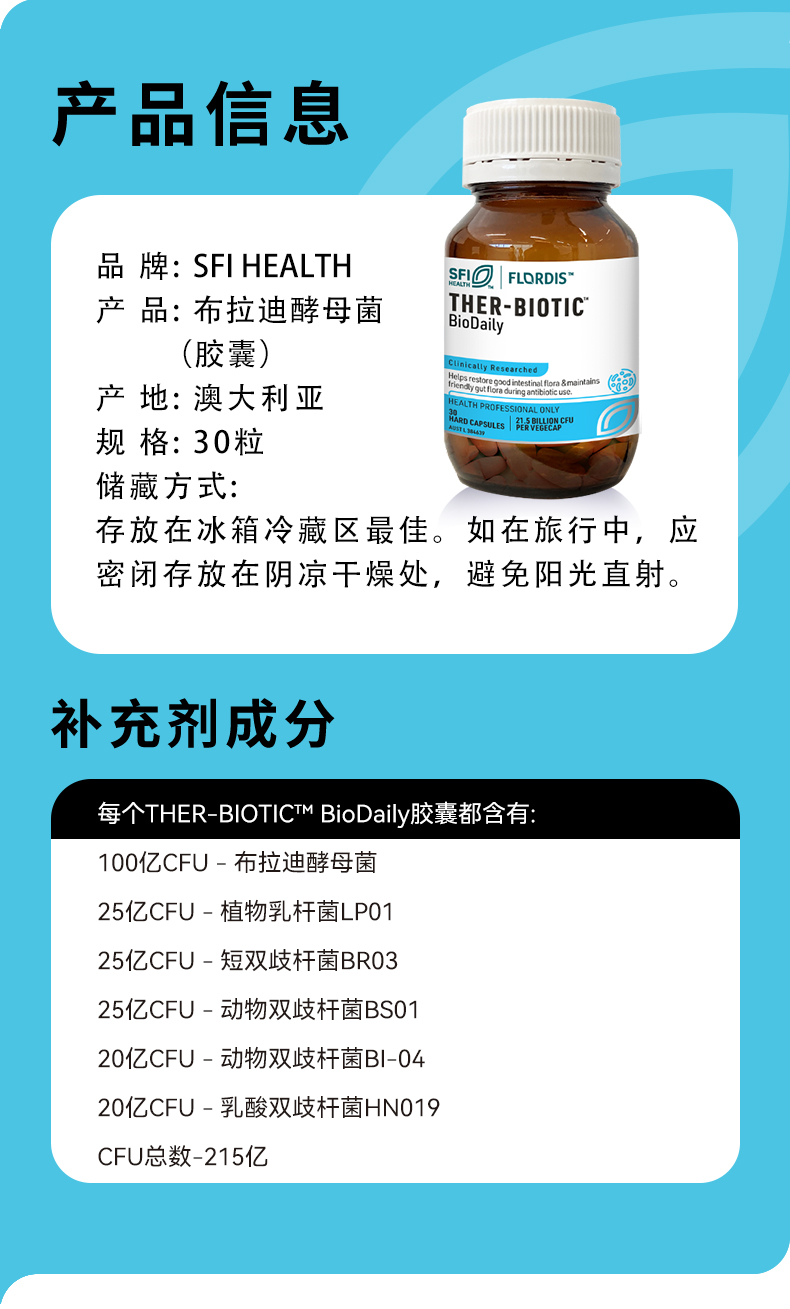 (怦然国际专属)SFI HEALTH 克莱尔THER-BIOTIC biodaily 布拉迪酵母菌布拉氏益生菌 30粒 26.9
