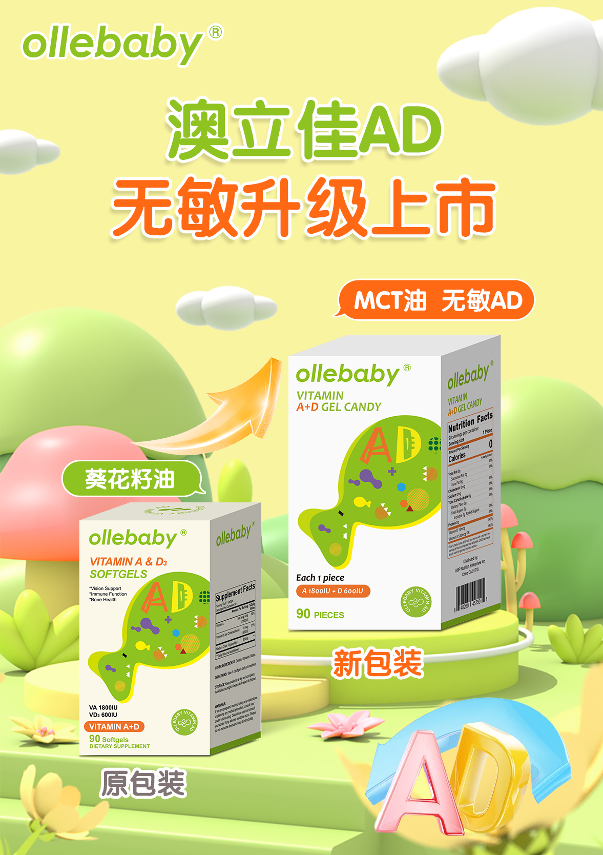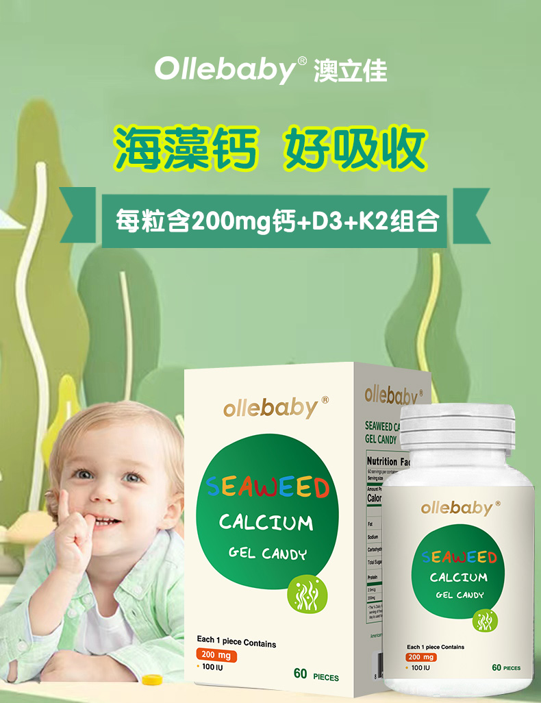 【补钙三剑客】澳立佳原装进口海藻钙+维生素AD胶囊+维生素K2胶囊