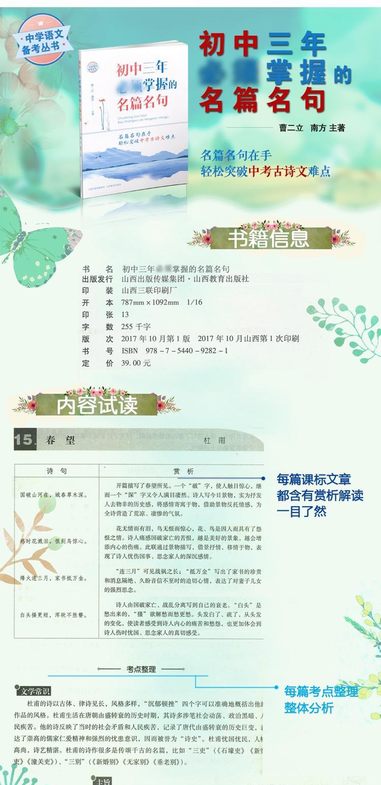 初中三年掌握的名篇名句 中考古诗文 课标古诗词 赏析