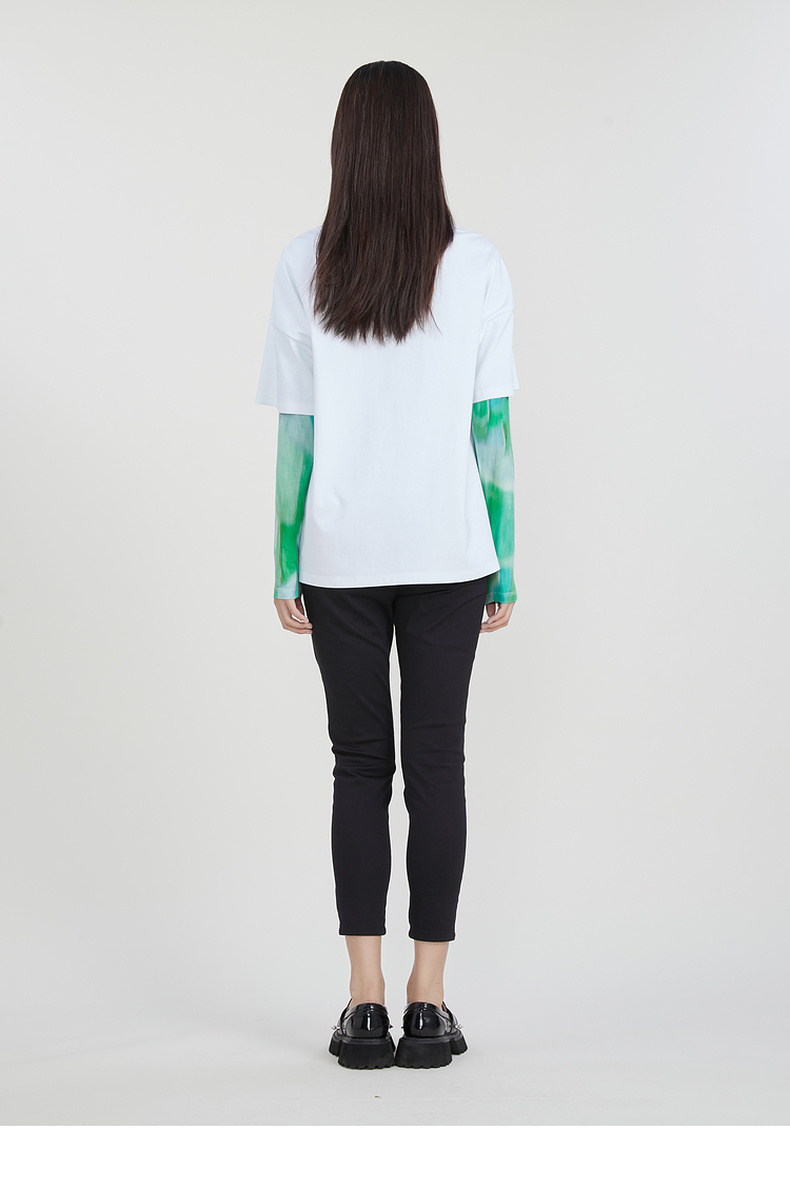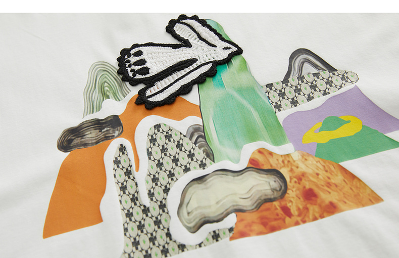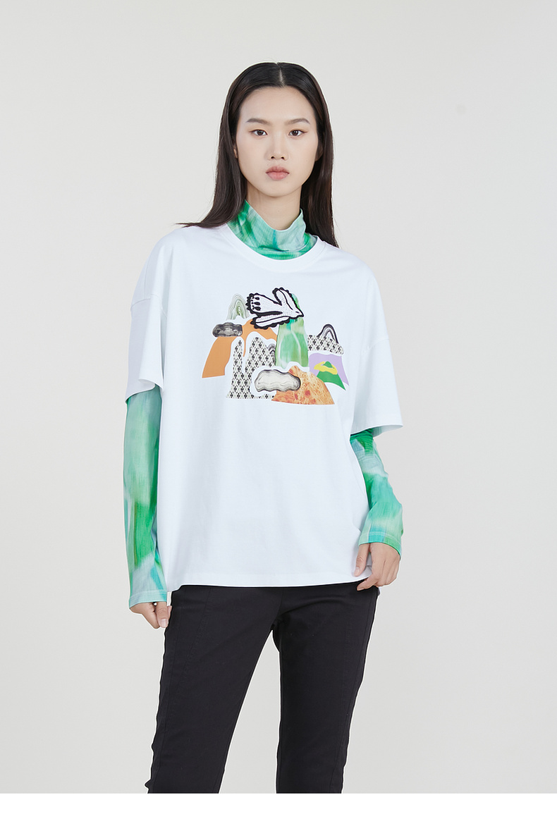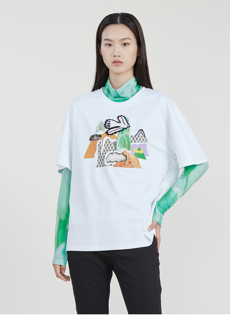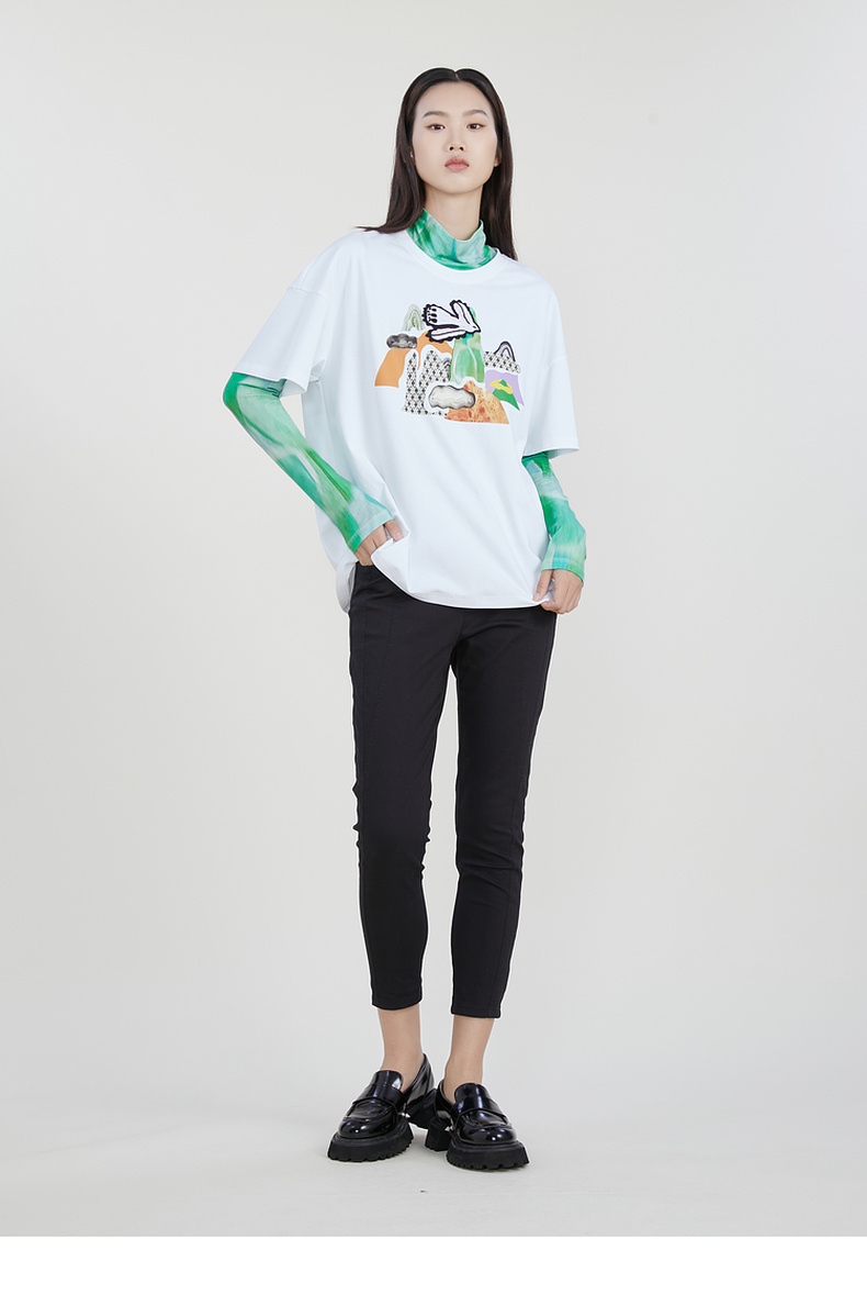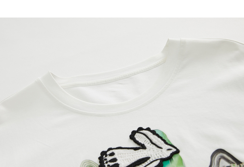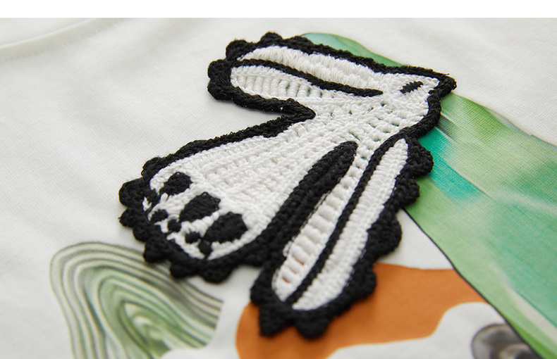 谜底2023春季新款主题图案印花绣花休闲圆领短袖T恤女231MT0046