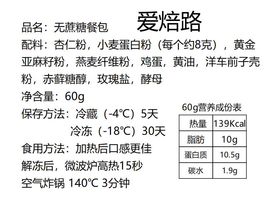 无蔗糖无面粉低碳生酮餐包汉堡面包 含少量麸质