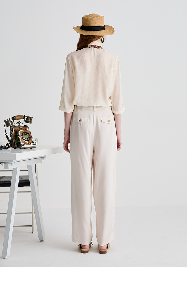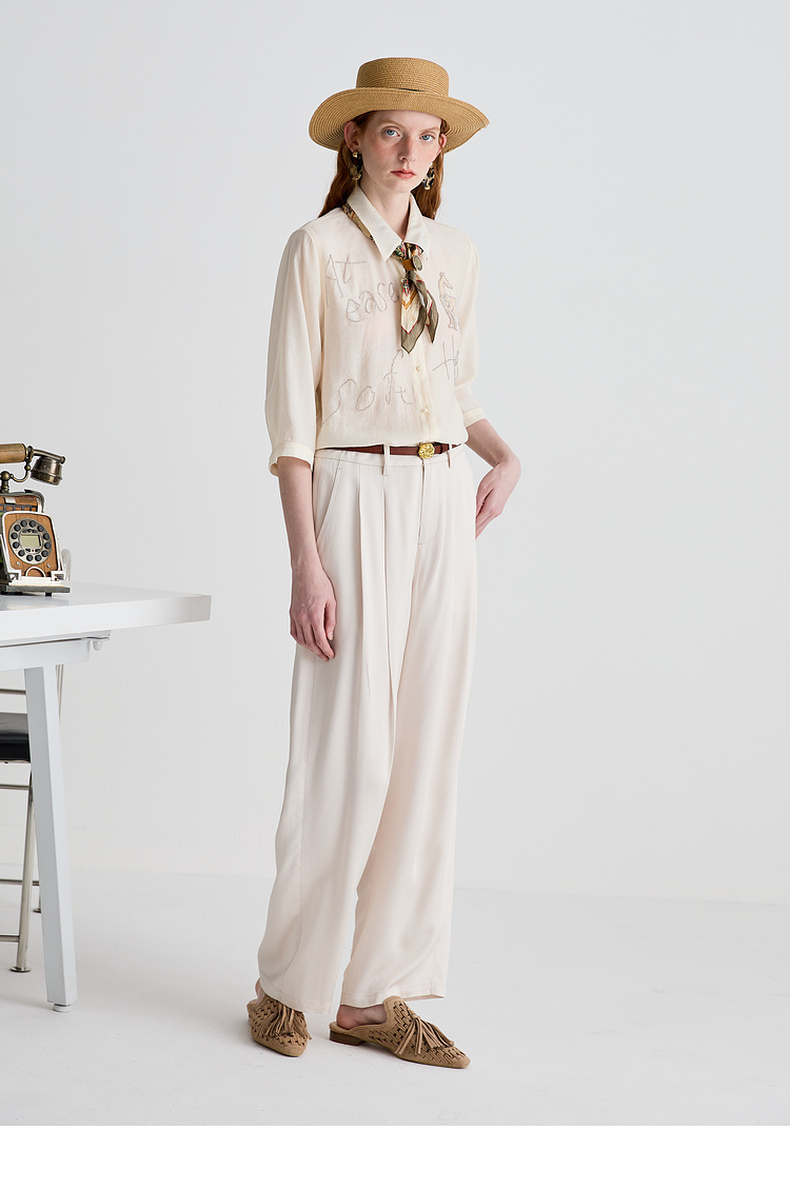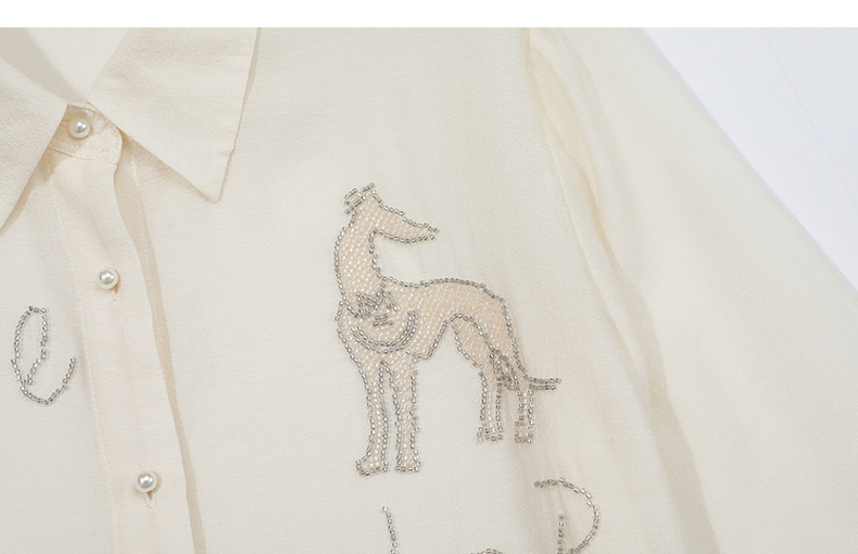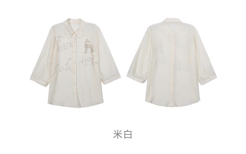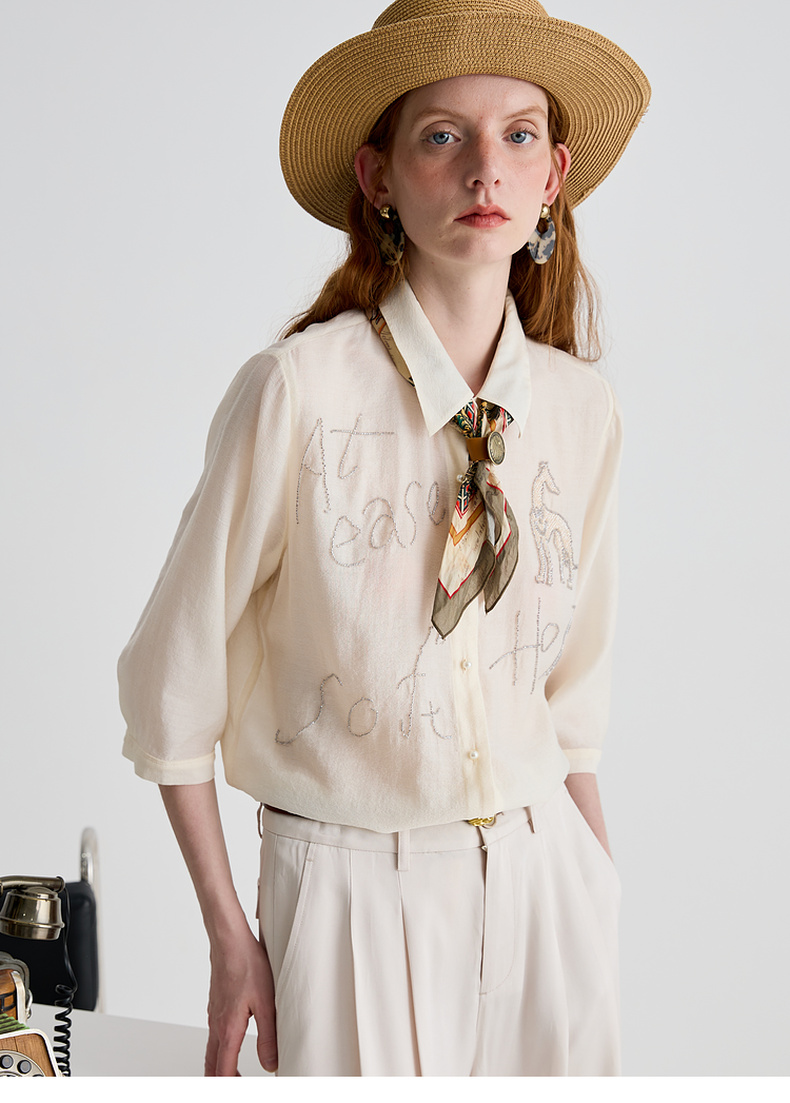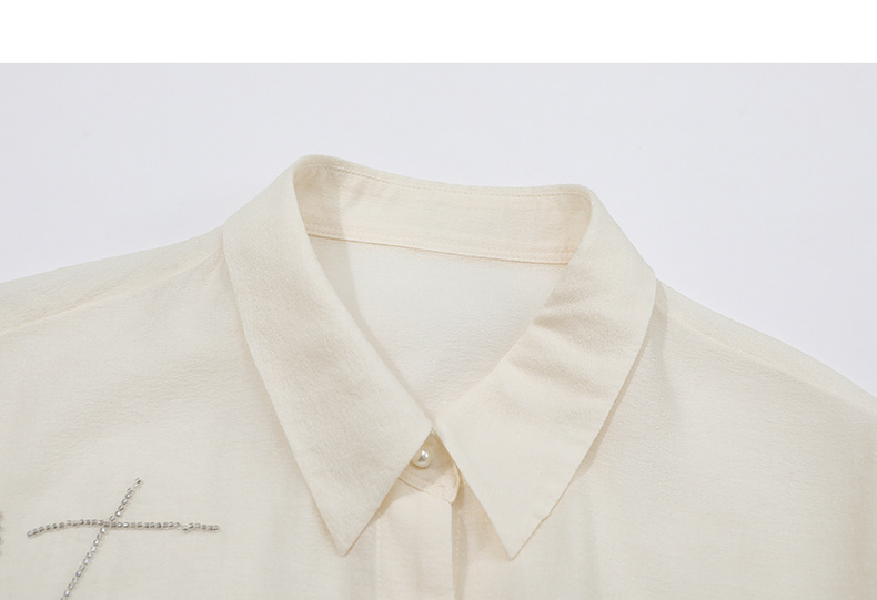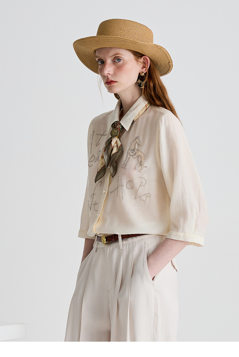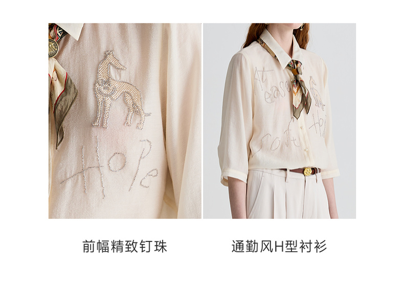 谜底衬衫分袖女2025夏季新品通勤宽松H型钉珠微透衬衣252MC0678