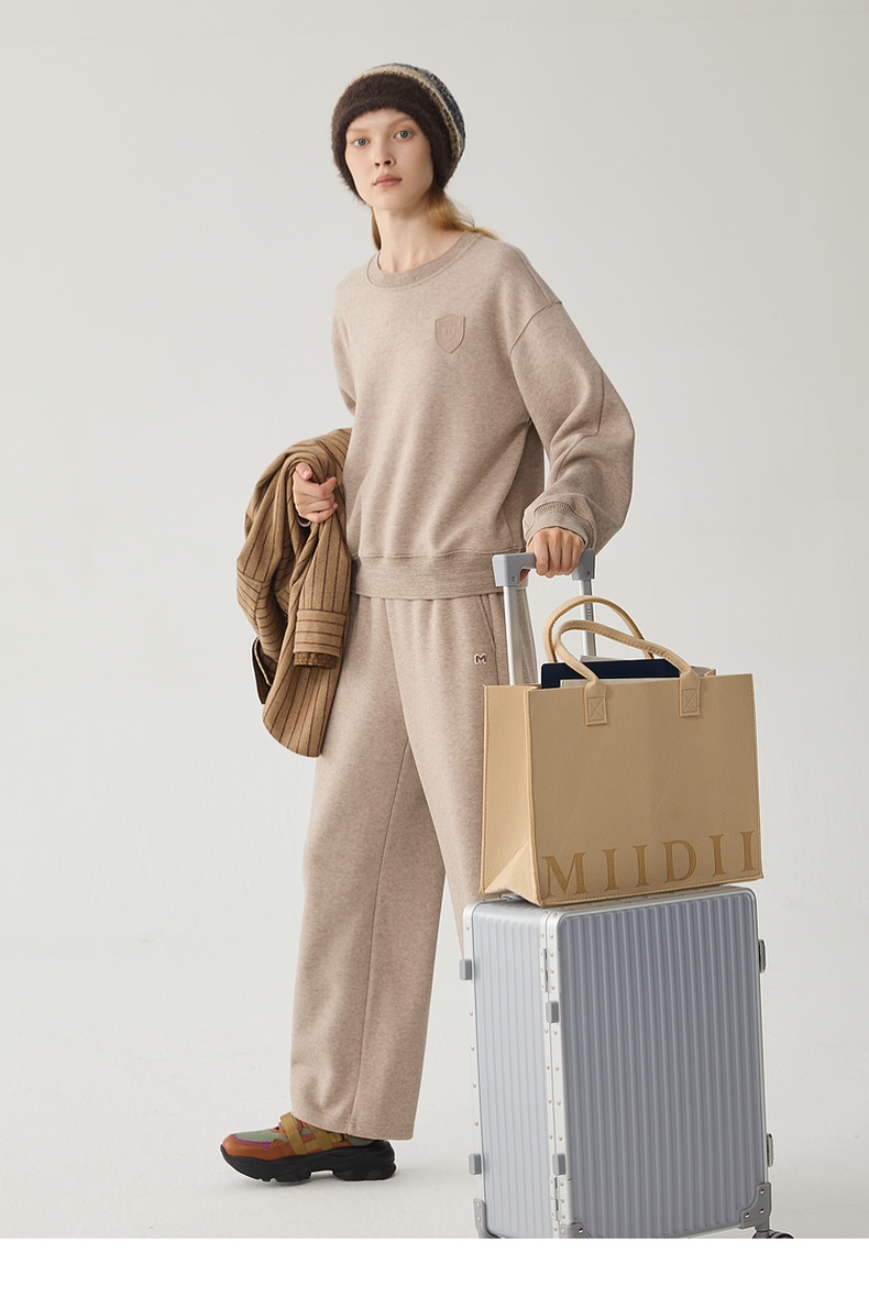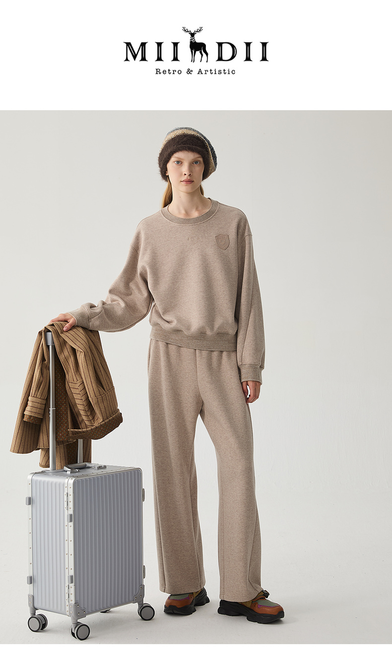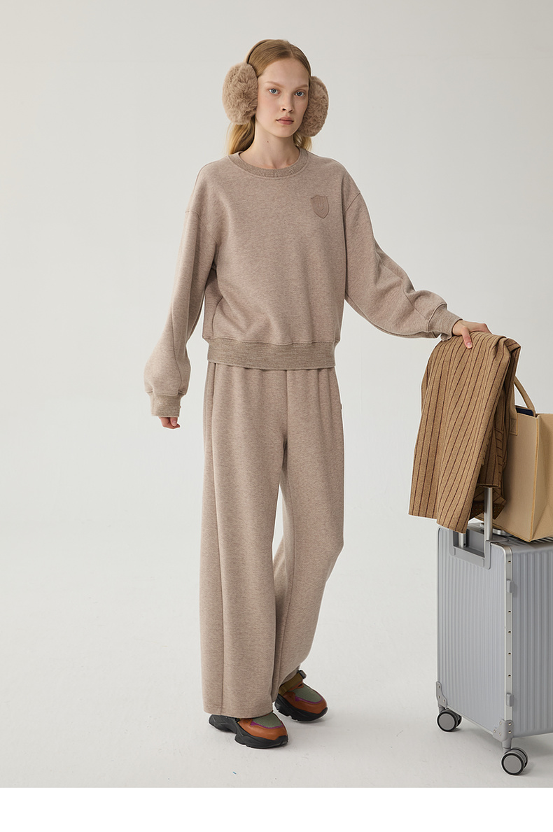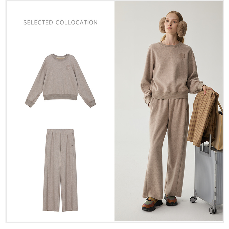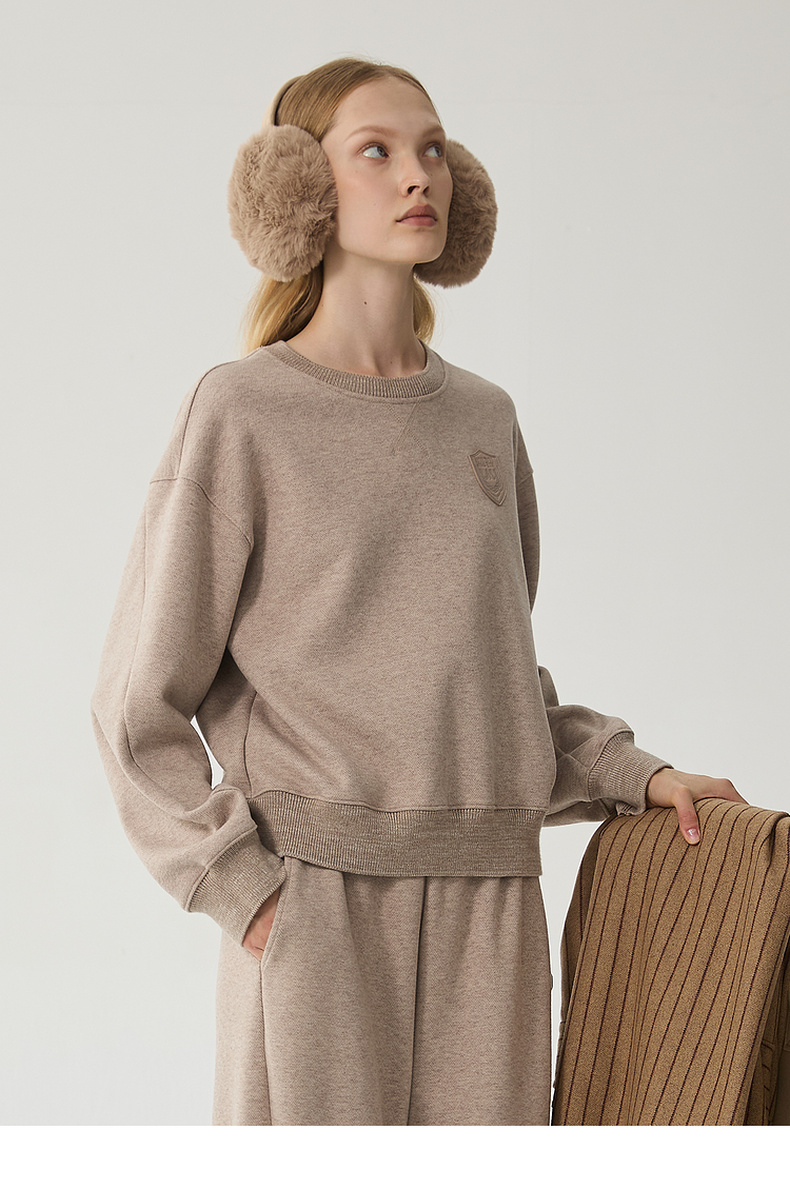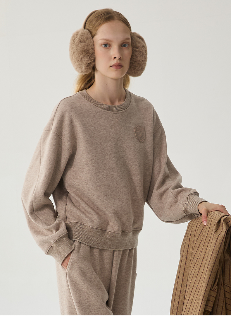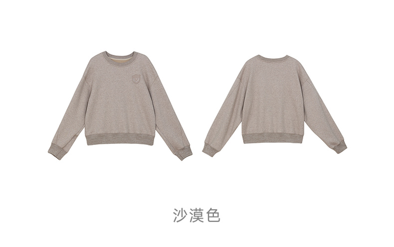 谜底套头卫衣女2024冬季新品休闲百搭宽松圆领徽章上衣244MV1595