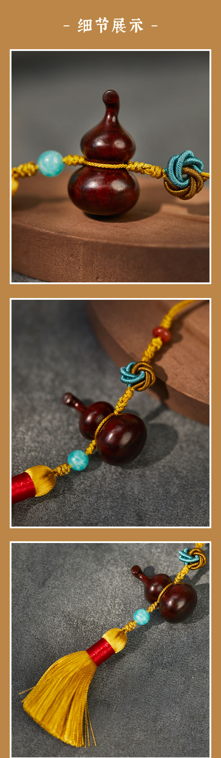 牛首山文创紫檀福禄挂件国风手工编织挂件手机挂件包挂精致挂饰