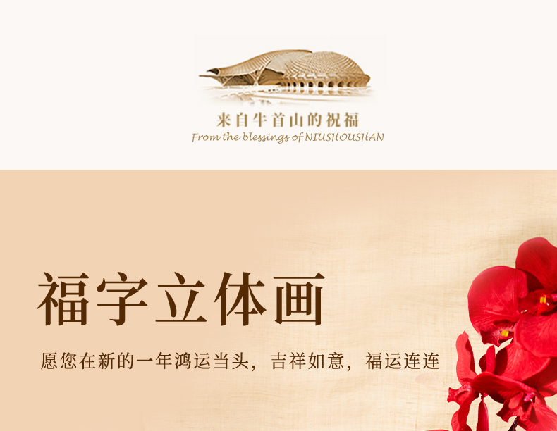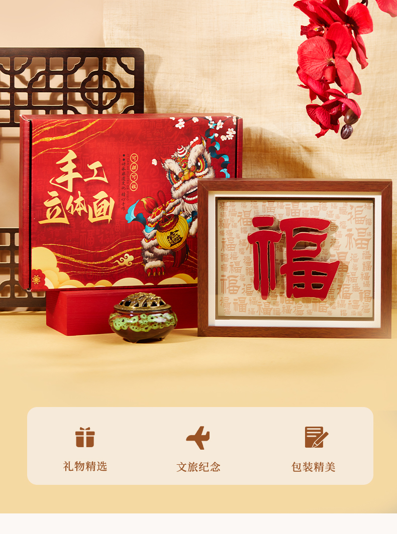 牛首山文创福字立体画新年创意木质立体画摆件南京纪念品新年礼物