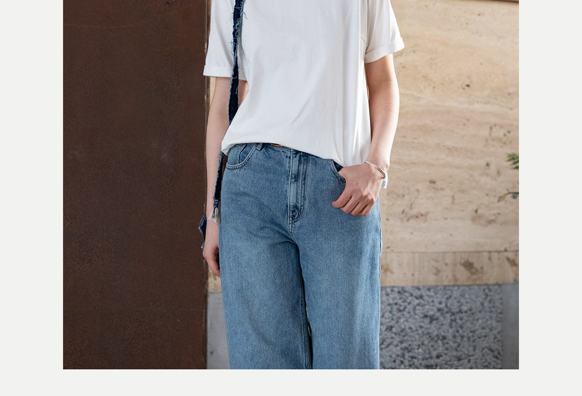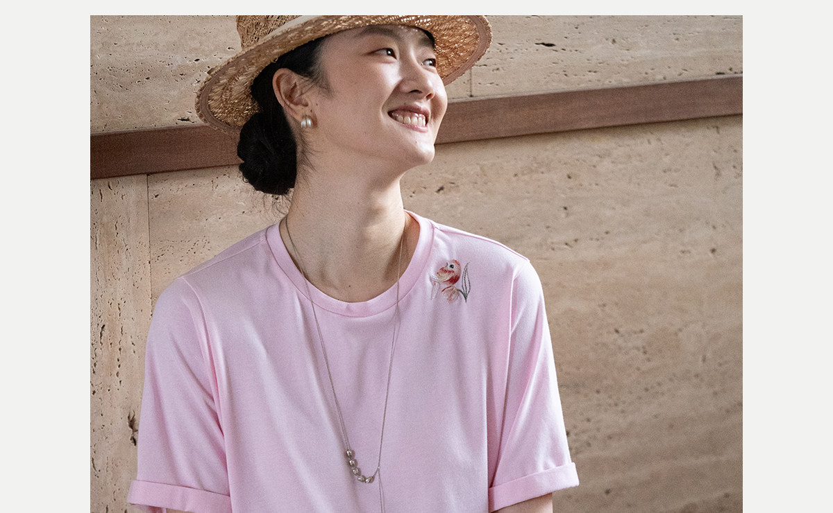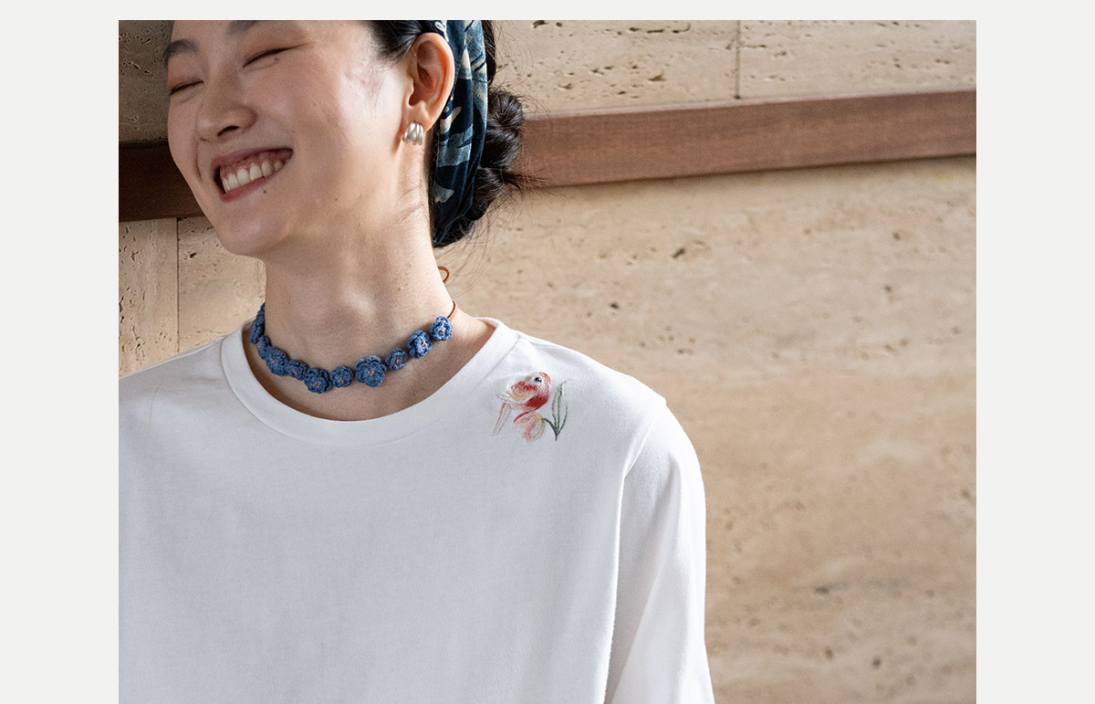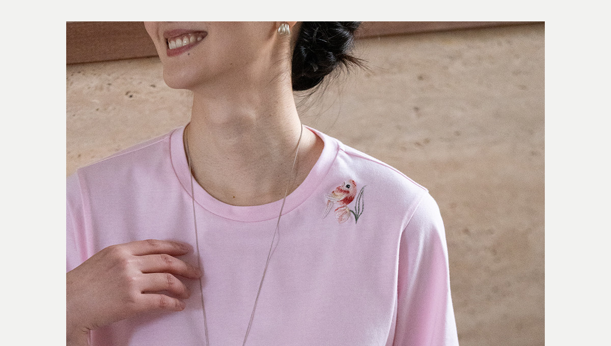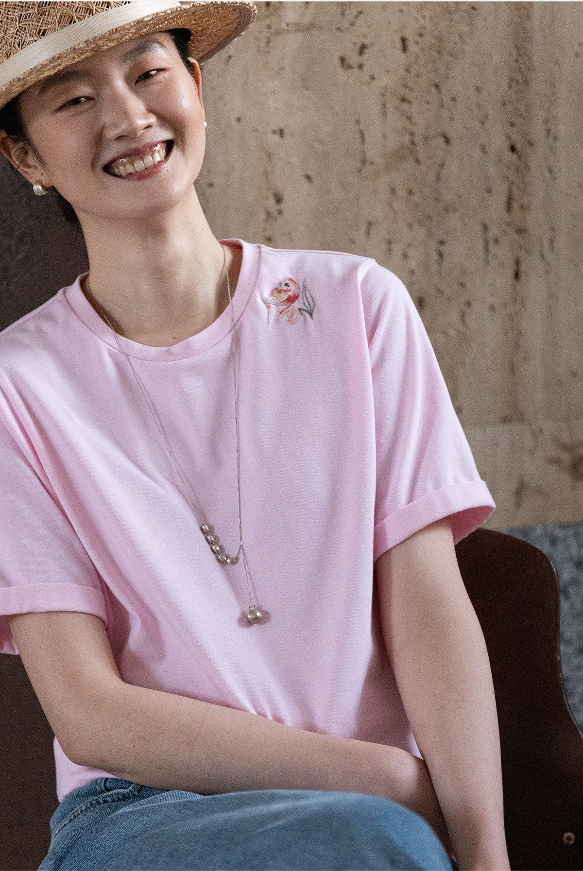 牧衣游原创手工刺绣纯棉T恤新款简约圆领百搭休闲短袖套头衫 乐渝
