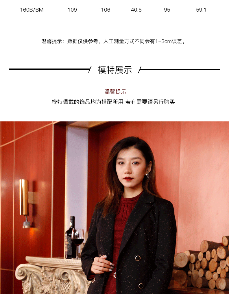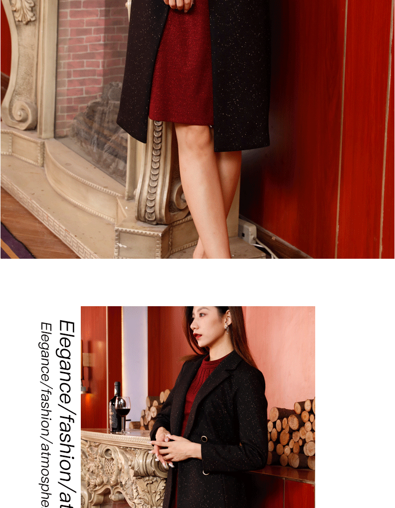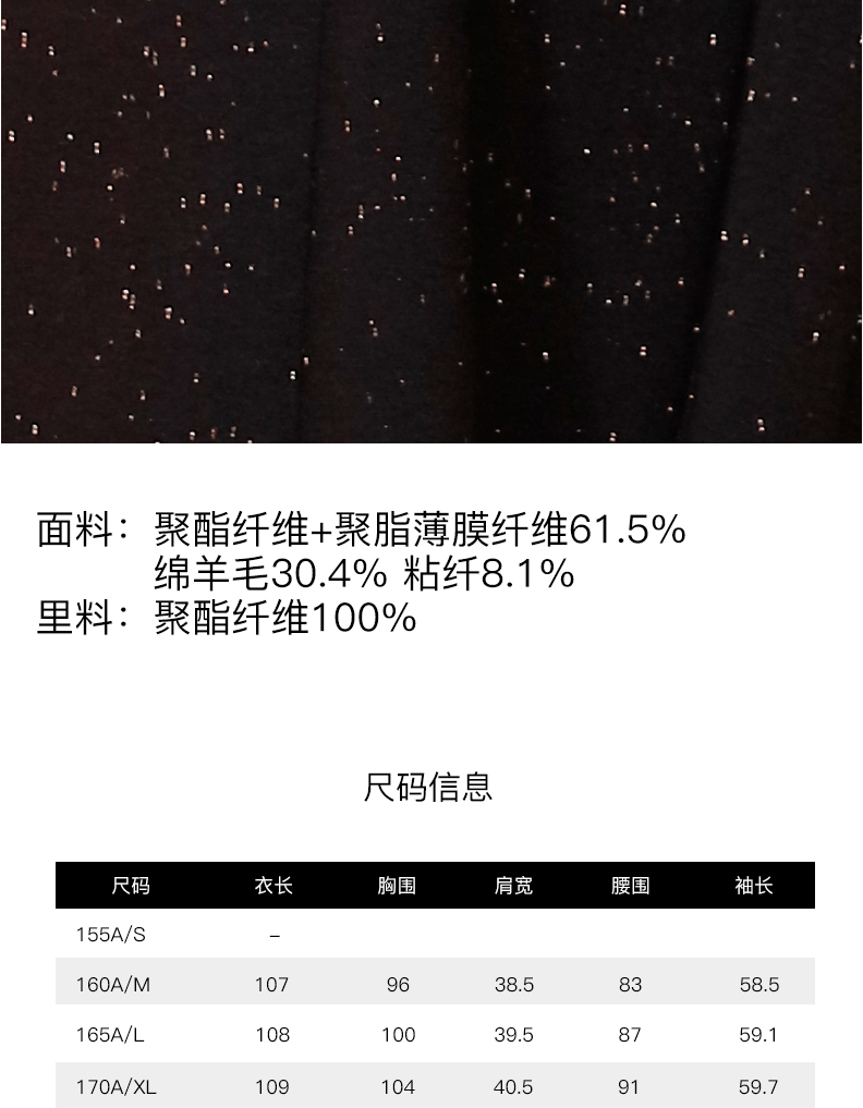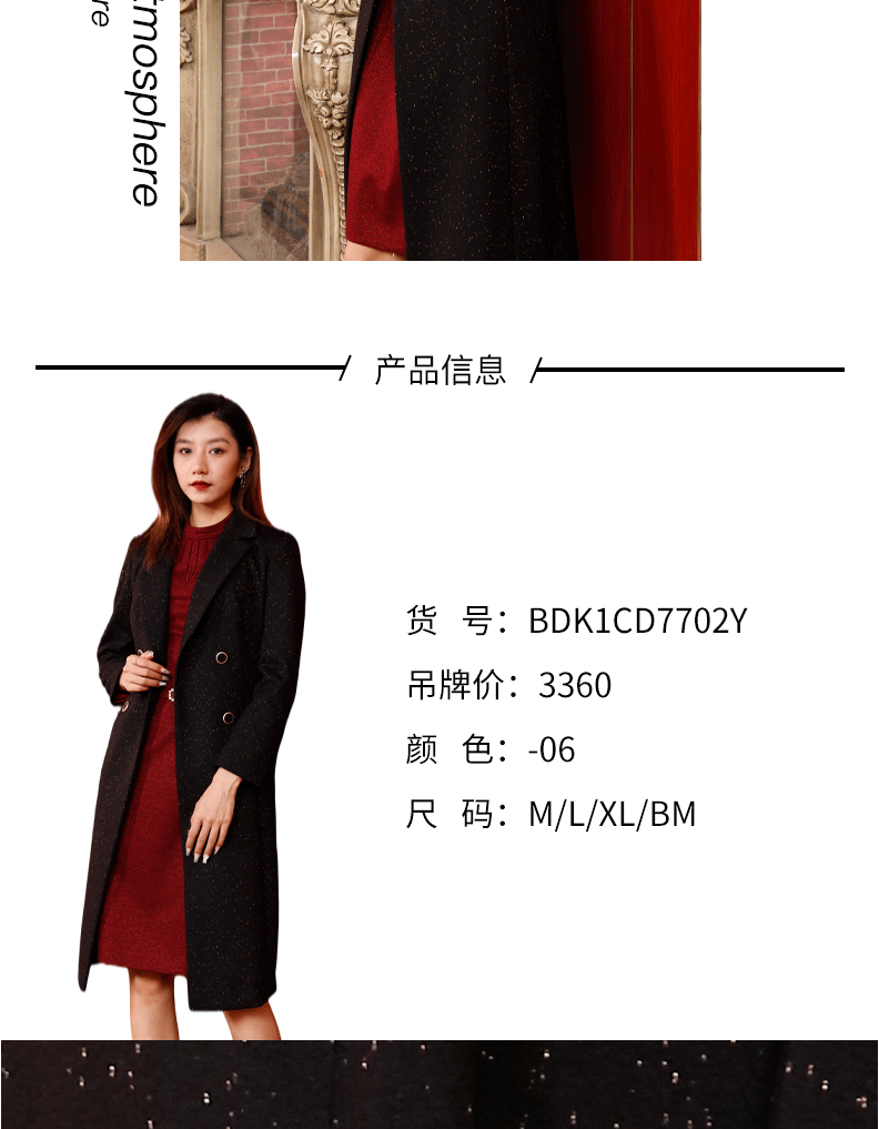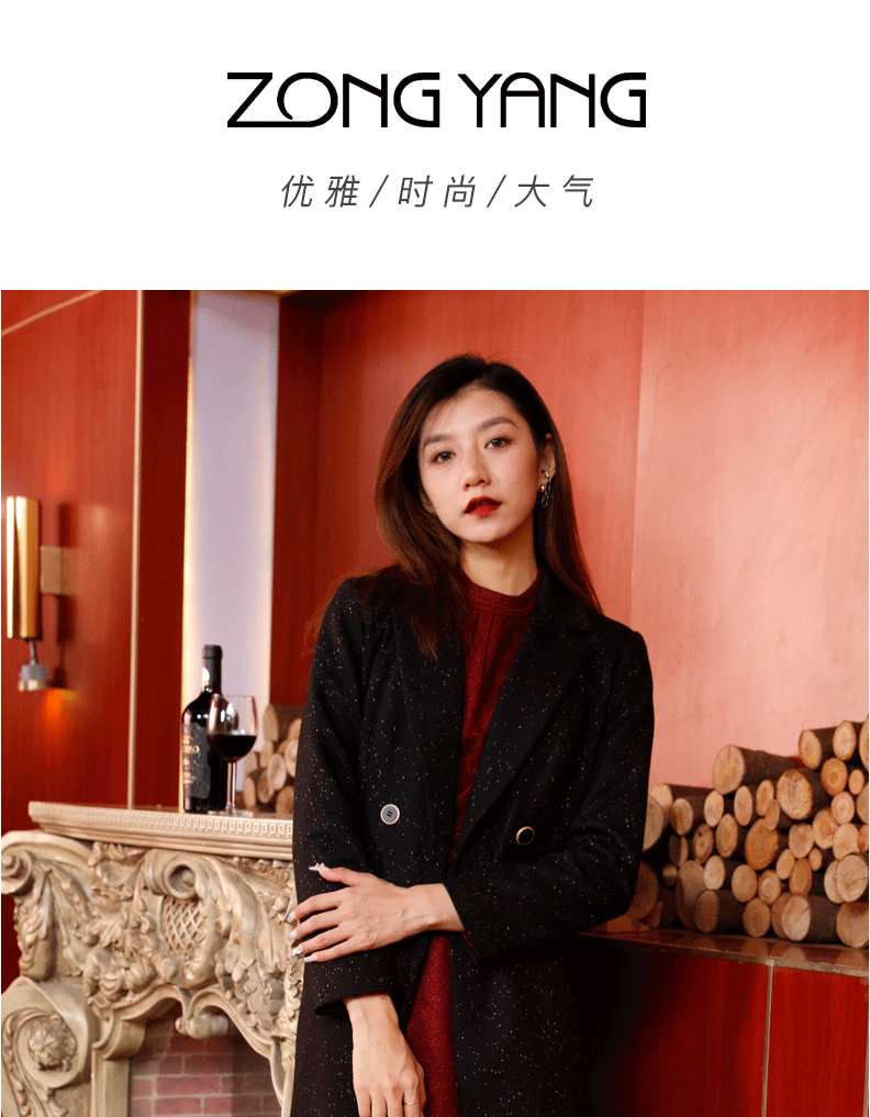 宗洋女士黑色百搭中长款大衣BDK1CD7702Y-06