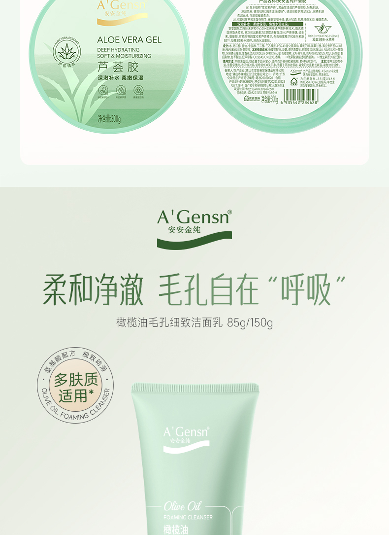 安安芦荟胶洁面乳修护套组 补水保湿晒后修护【龙菲精选】
