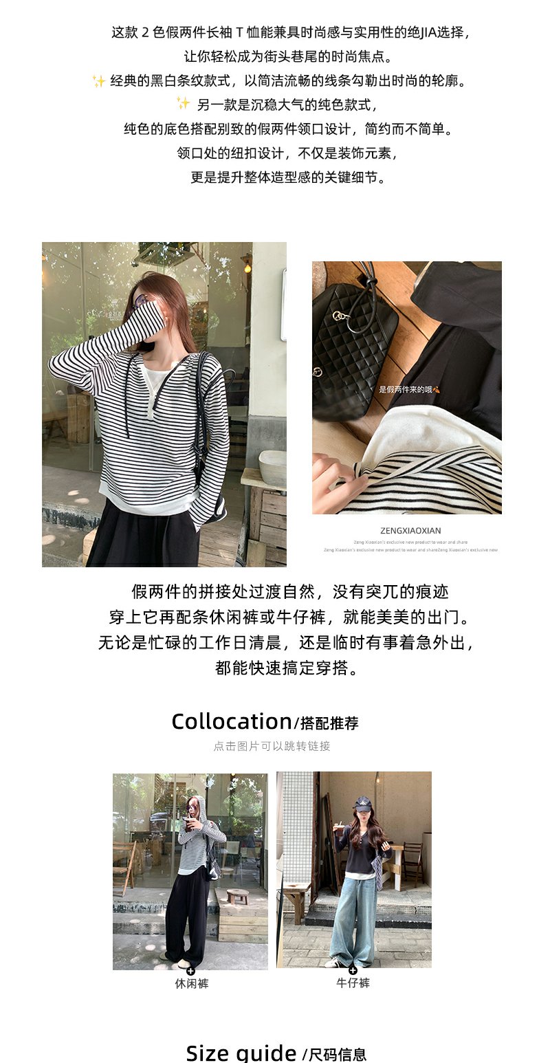 <曾小咸推荐>现货秒杀 !微信超特价!韩系2色假两件长袖T恤 日常119.99 立减40 秒杀79.99!!
