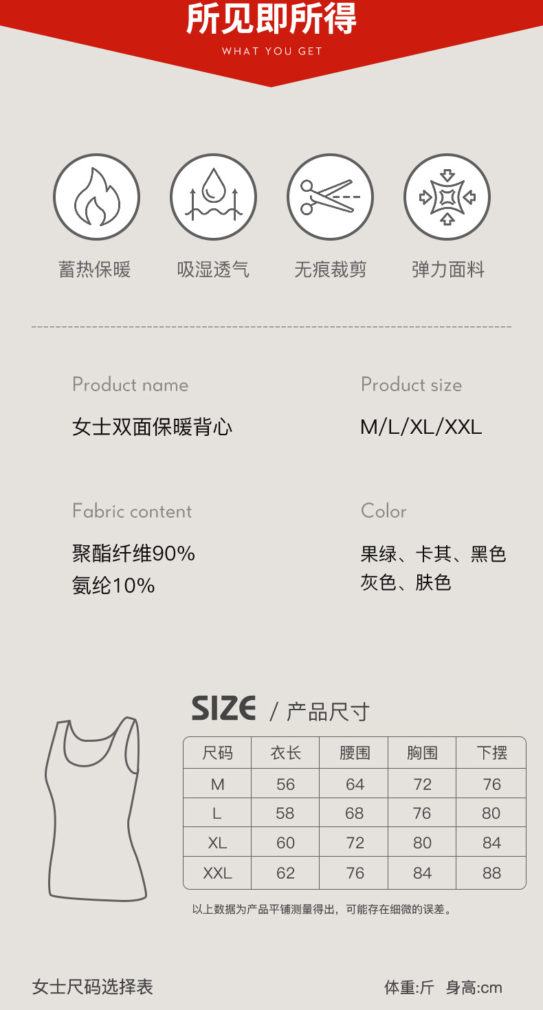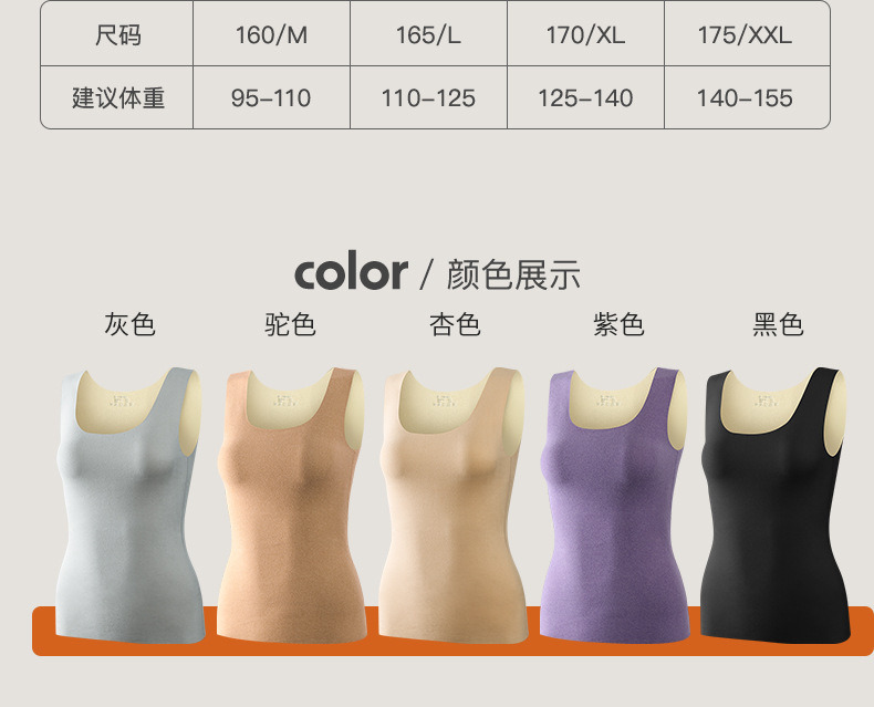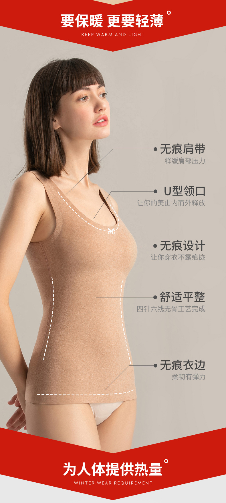 秋冬季蚕丝羊毛保暖背心,体验温暖与梦幻的奇妙结合,穿上一体式发热无痕背心,感受蚕丝柔软与马甲舒适并存。稳固杯制,完Mei展现女性曲线,让你保暖与时尚并行!