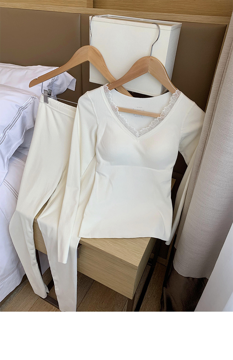 睡前蕞温暖的拥抱,秋冬季必备!绵羊毛保暖套装女,无痕打底,加绒加厚自带胸垫。