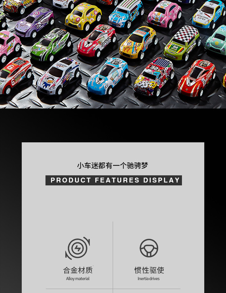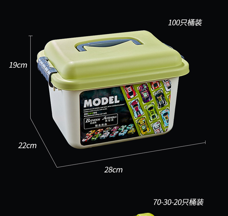 「抖音同款!100辆桶装」 儿童合金小汽车玩具车套装1:64回力惯性仿真铁皮回力车收纳盒套装