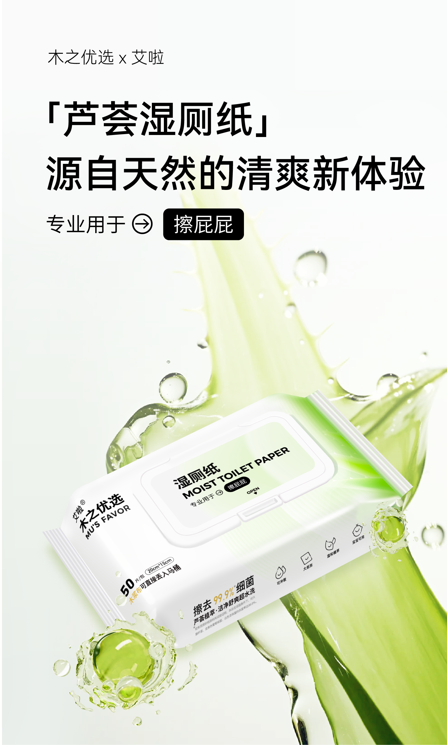 艾啦湿厕纸芦荟金缕梅精华可冲散除菌配方豪悦(5大包+5小包)