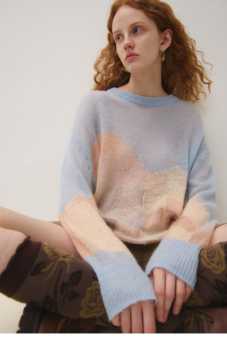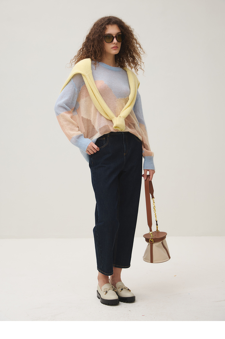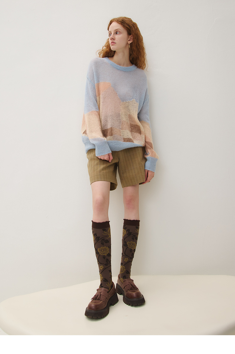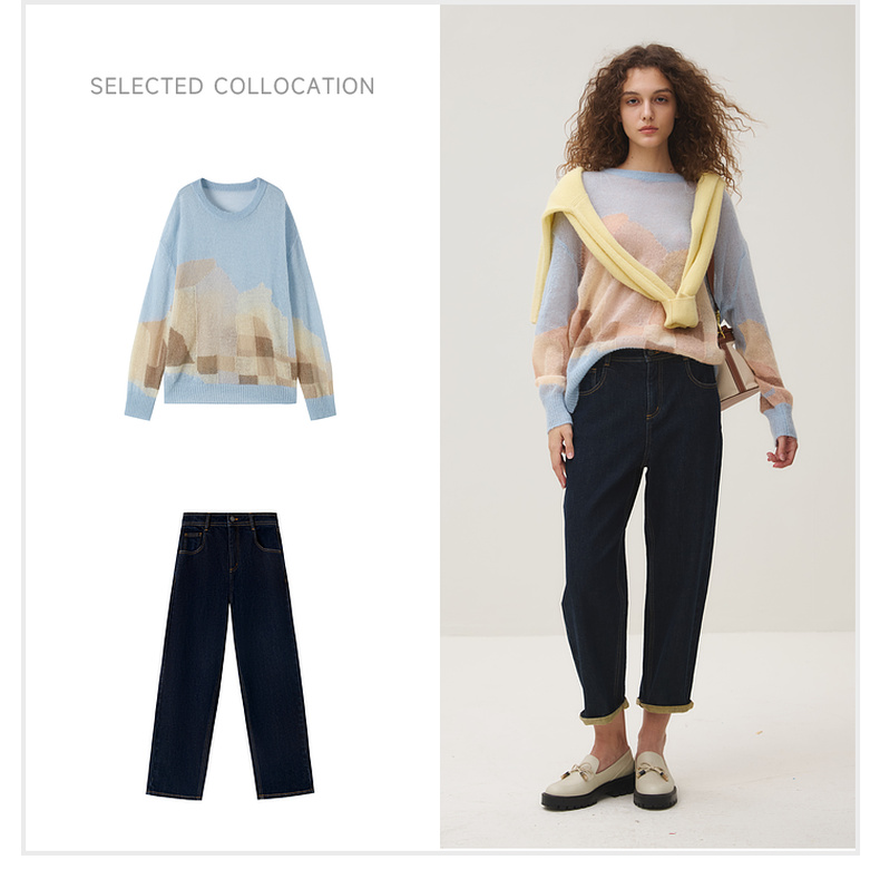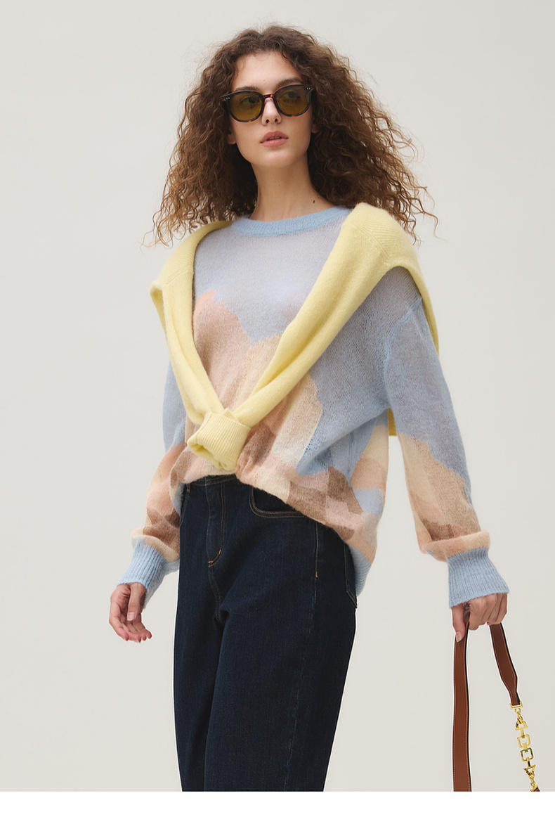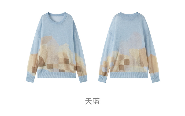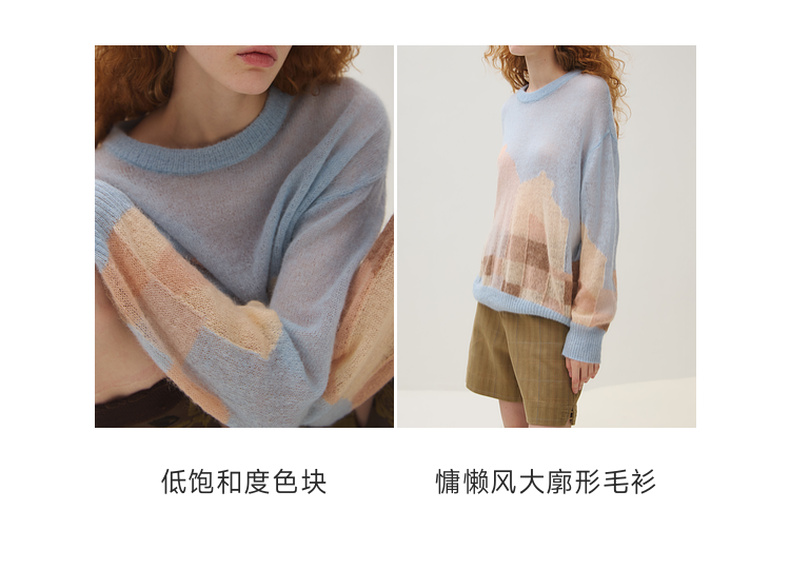 谜底套头针织衫女2025秋新品文艺风几何提花保暖大廓形253MZ1326