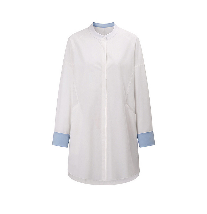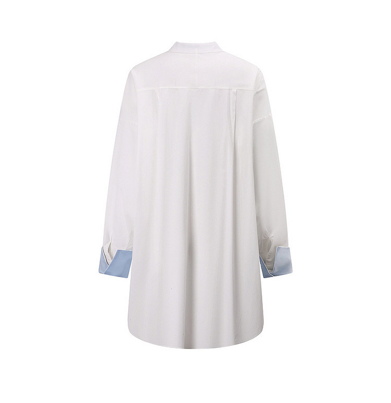 天猫同步【慵懒氛围感】拉夏贝尔/La Chapelle宽松舒适百搭撞色衬衫女显瘦通勤单排扣开叉长袖衬衣