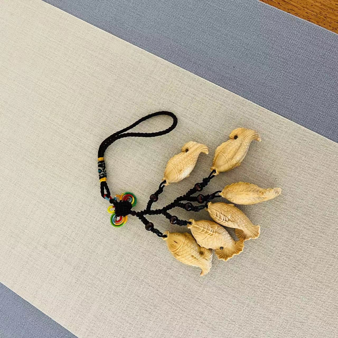 连年有余(六粒鱼)°黄杨木挂件