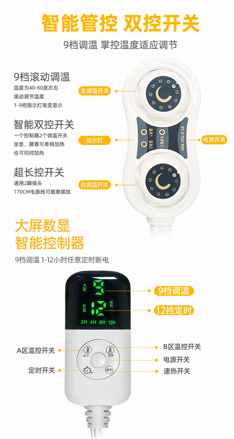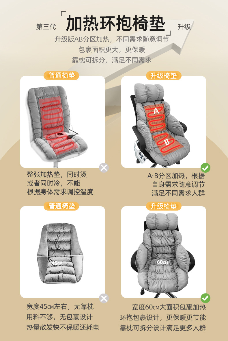 冬季加热坐垫办公室学生家用毛绒保暖坐垫靠背一体椅子垫