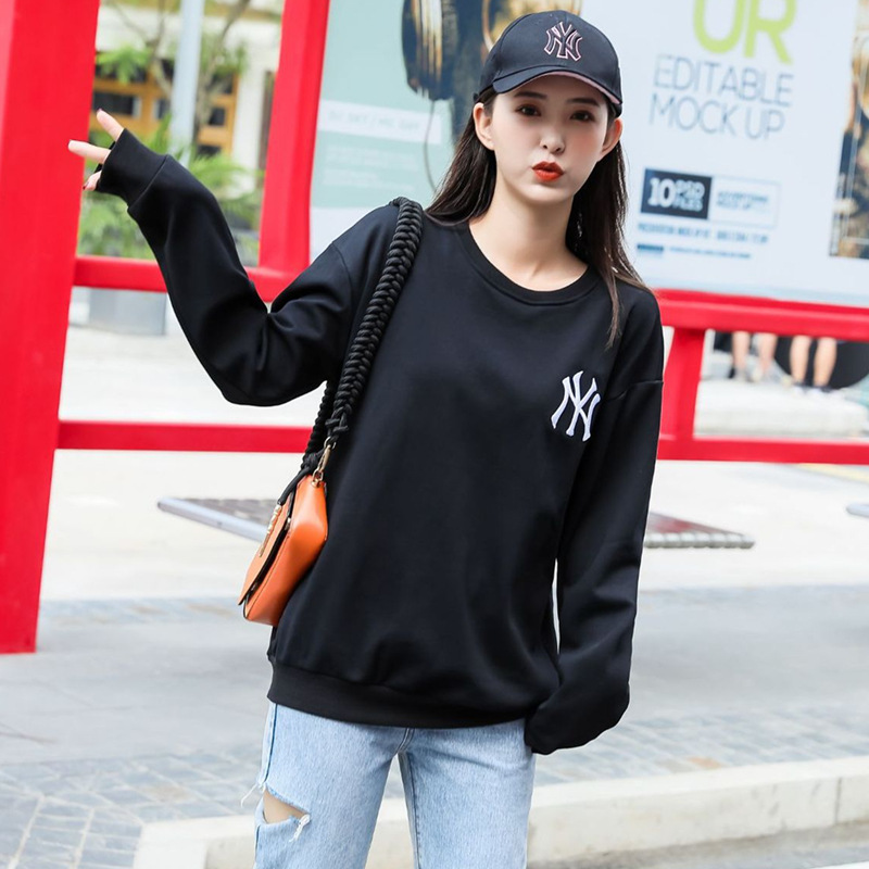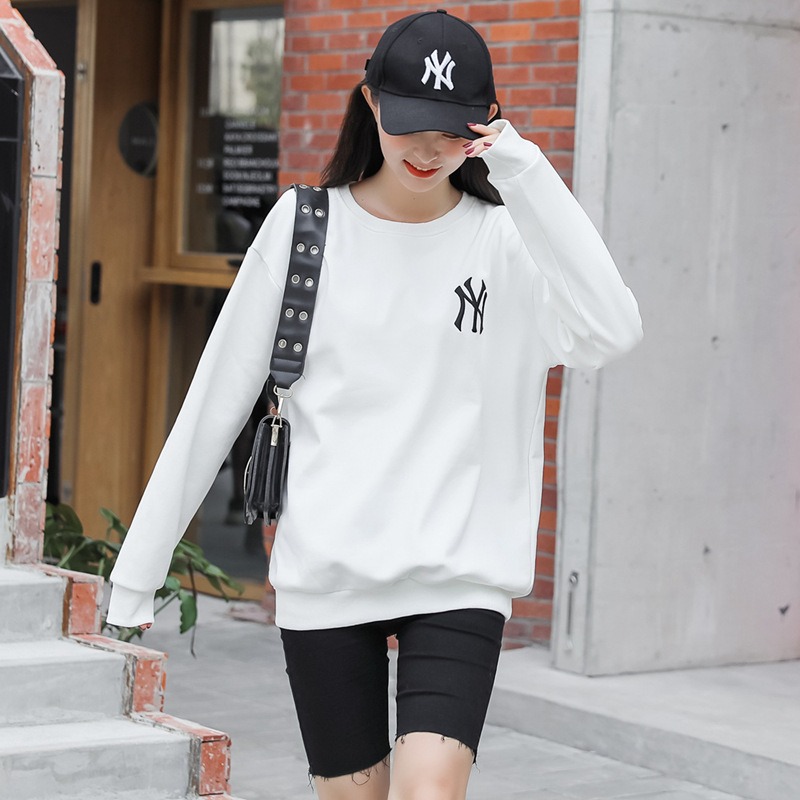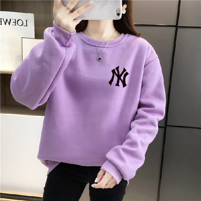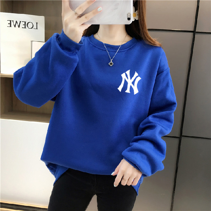 【新款秋冬季休闲加绒ins超火】网红明星同款圆领百搭男女时尚NY卫衣 宽松大码长袖韩版加绒加厚百搭保暖男女装