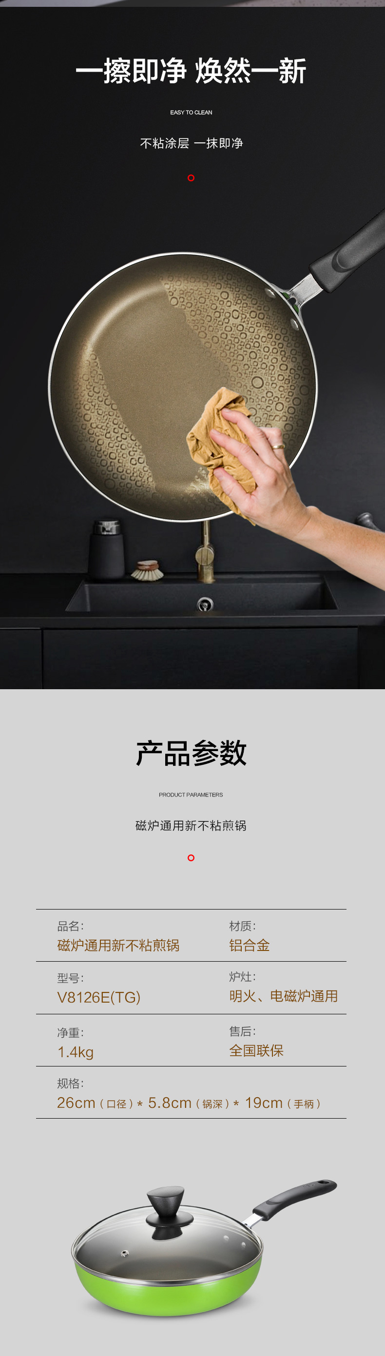 【自营】 爱仕达 易洁新不粘煎锅 V8126E(TG)