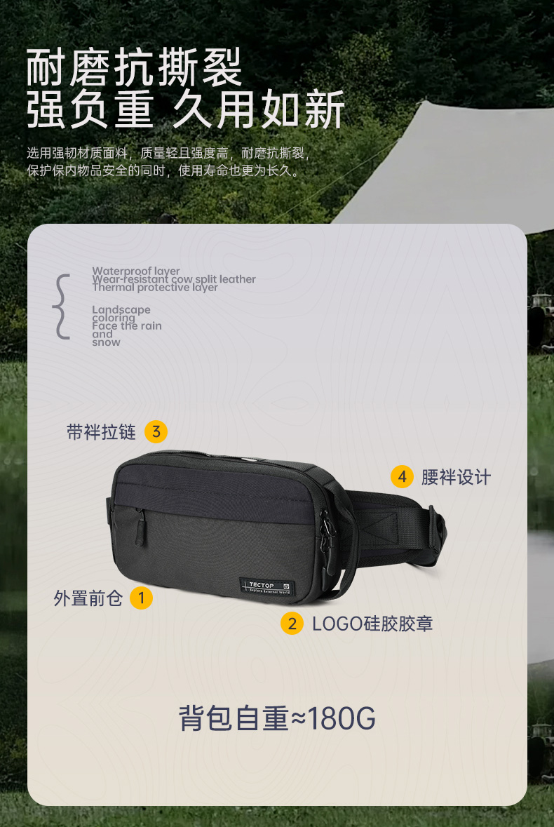 TECTOP/探拓户外运动腰包男款斜挎包女休闲轻便工装邮差包小方包