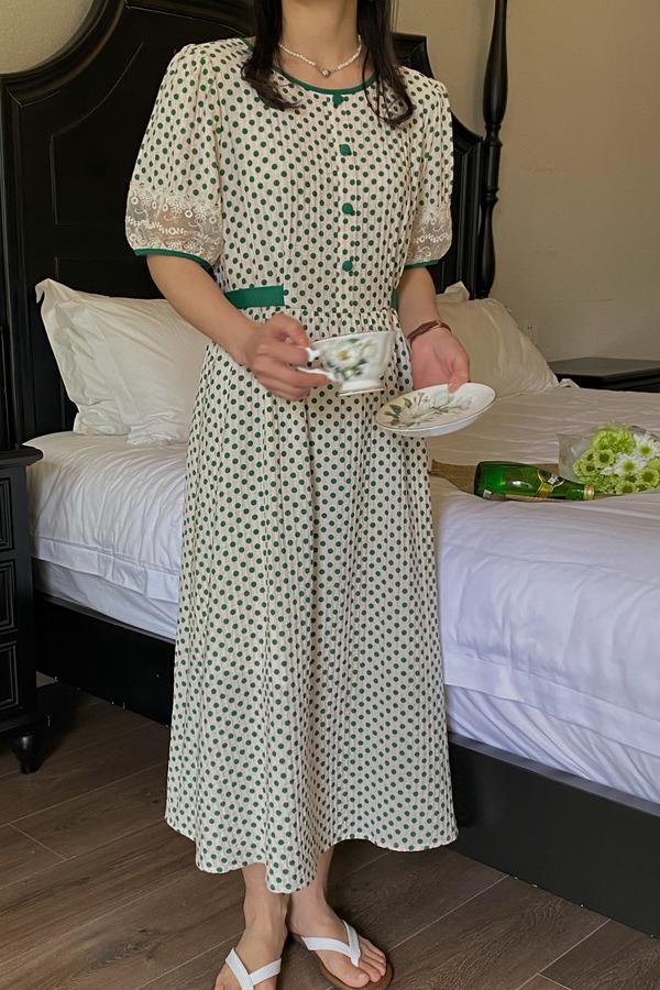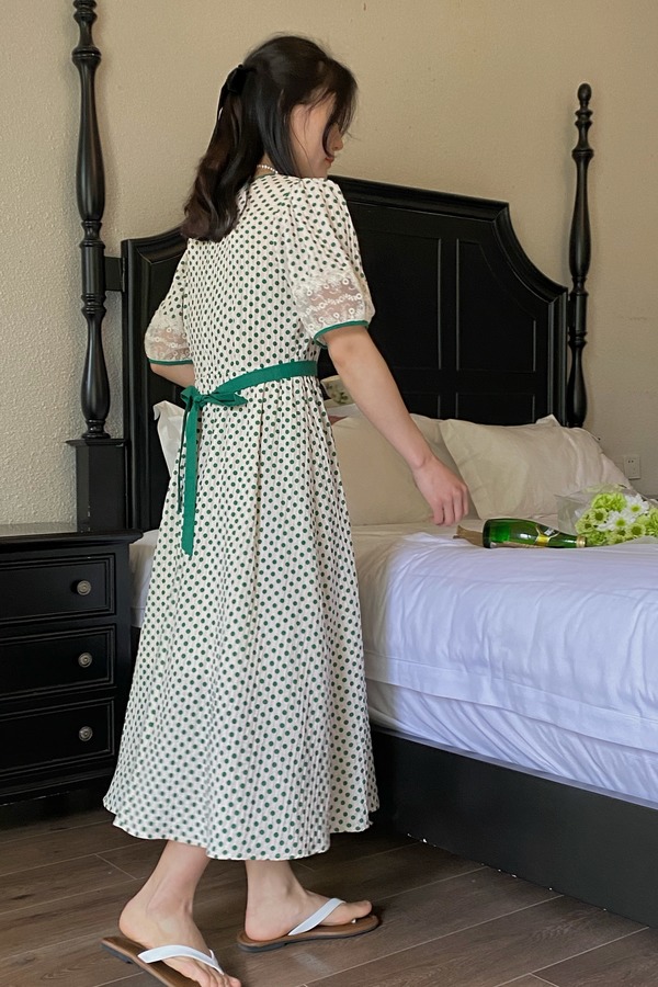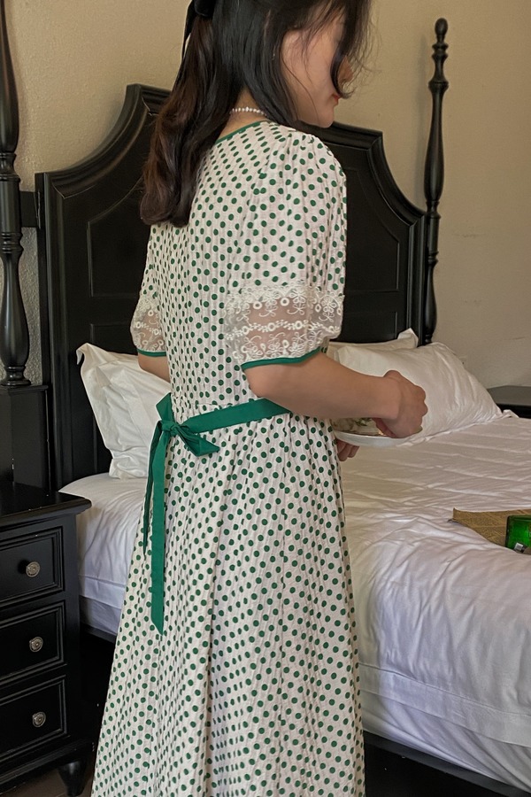 L.Fleuri 波点泡泡袖连衣裙 16195