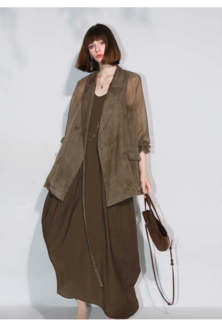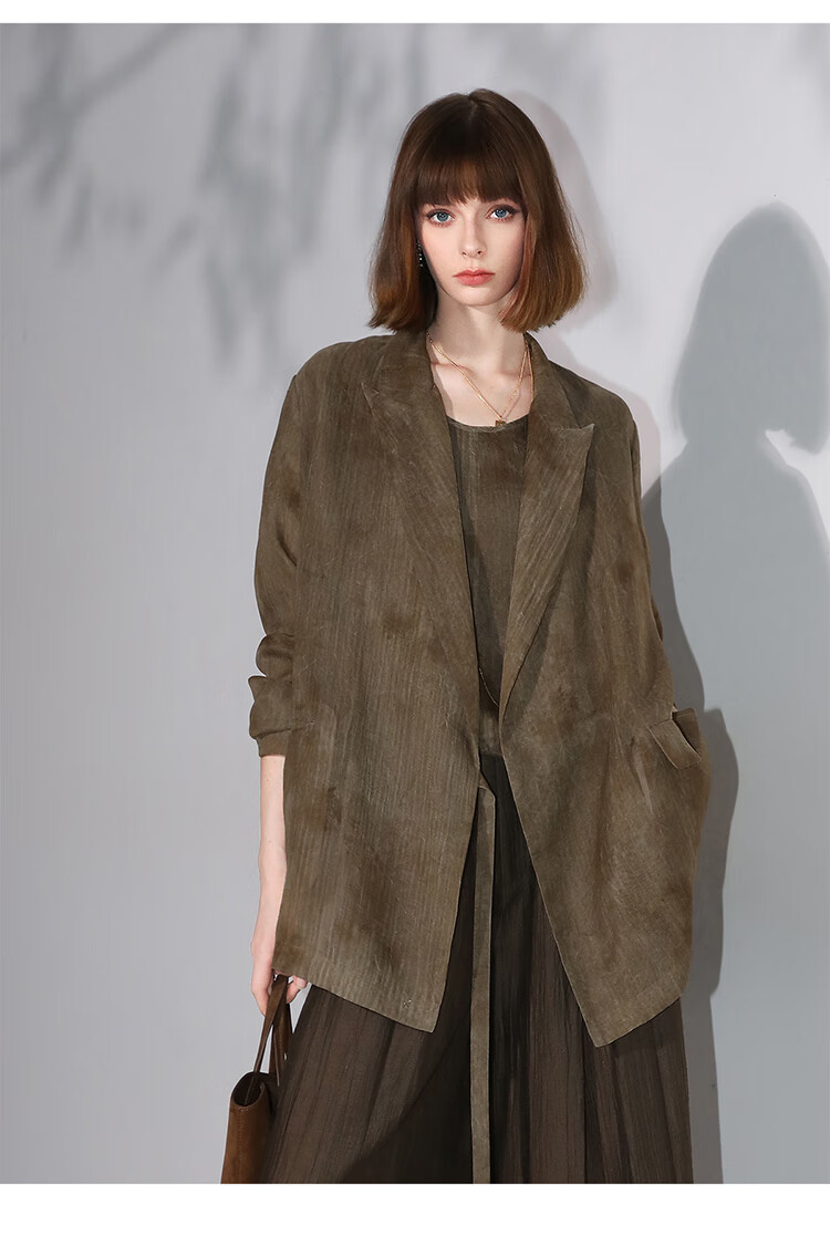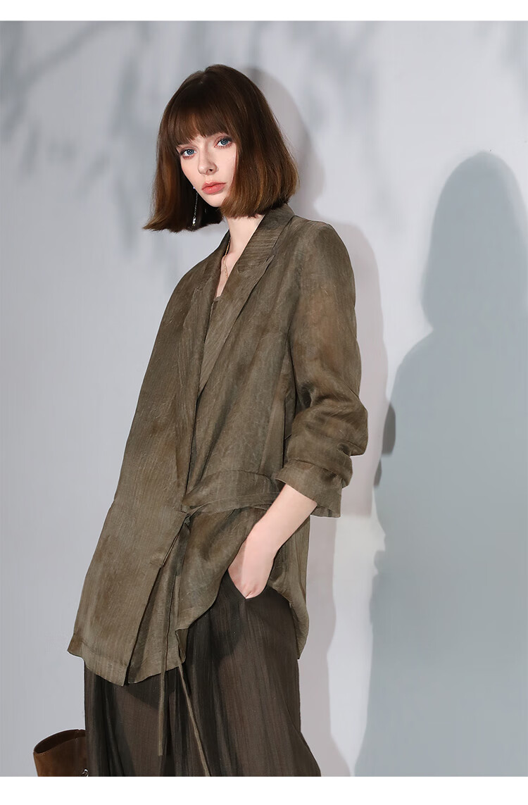 COCOBELLA新中式老钱风炒色晕染西装春夏微透视西服外套SI3030-2