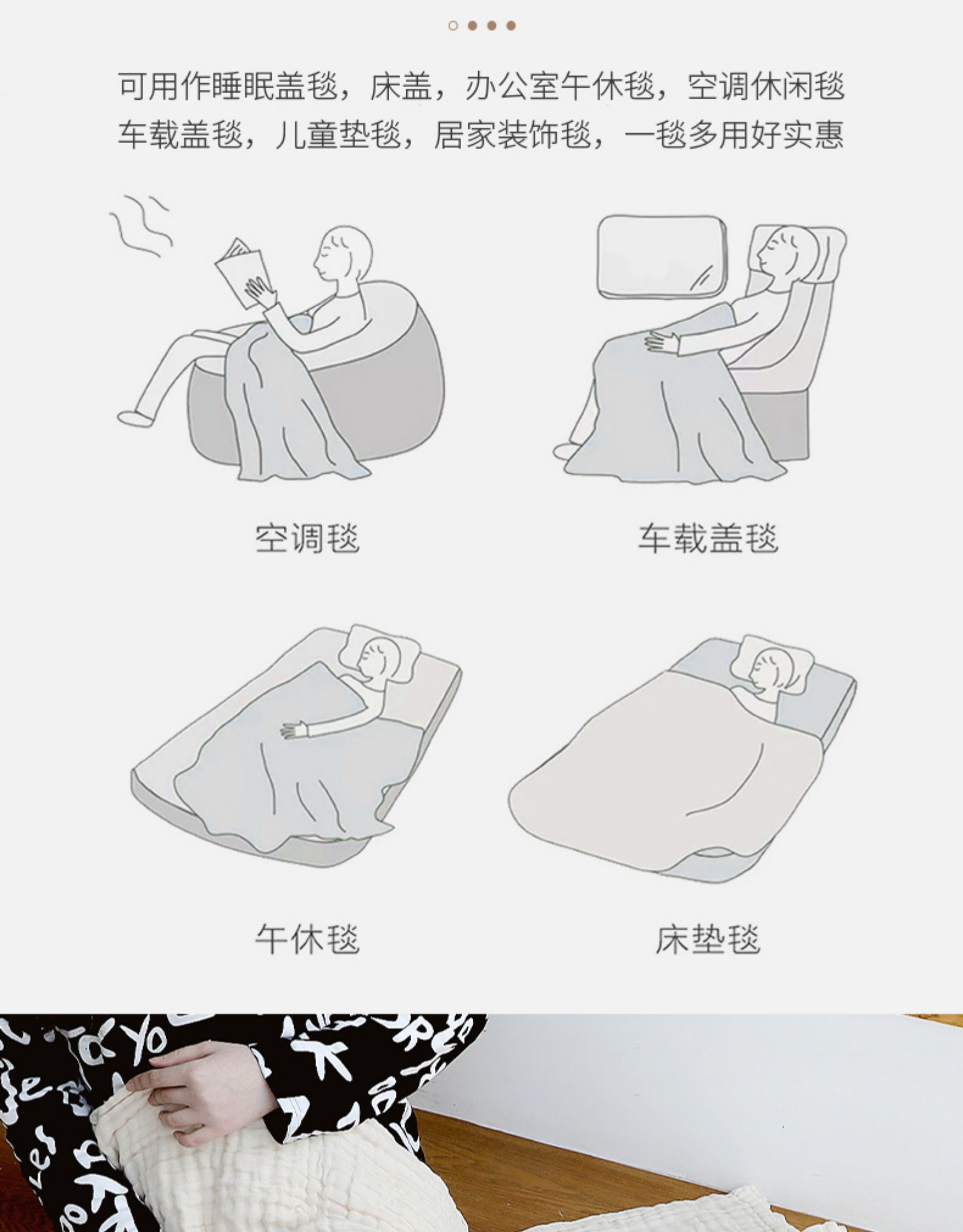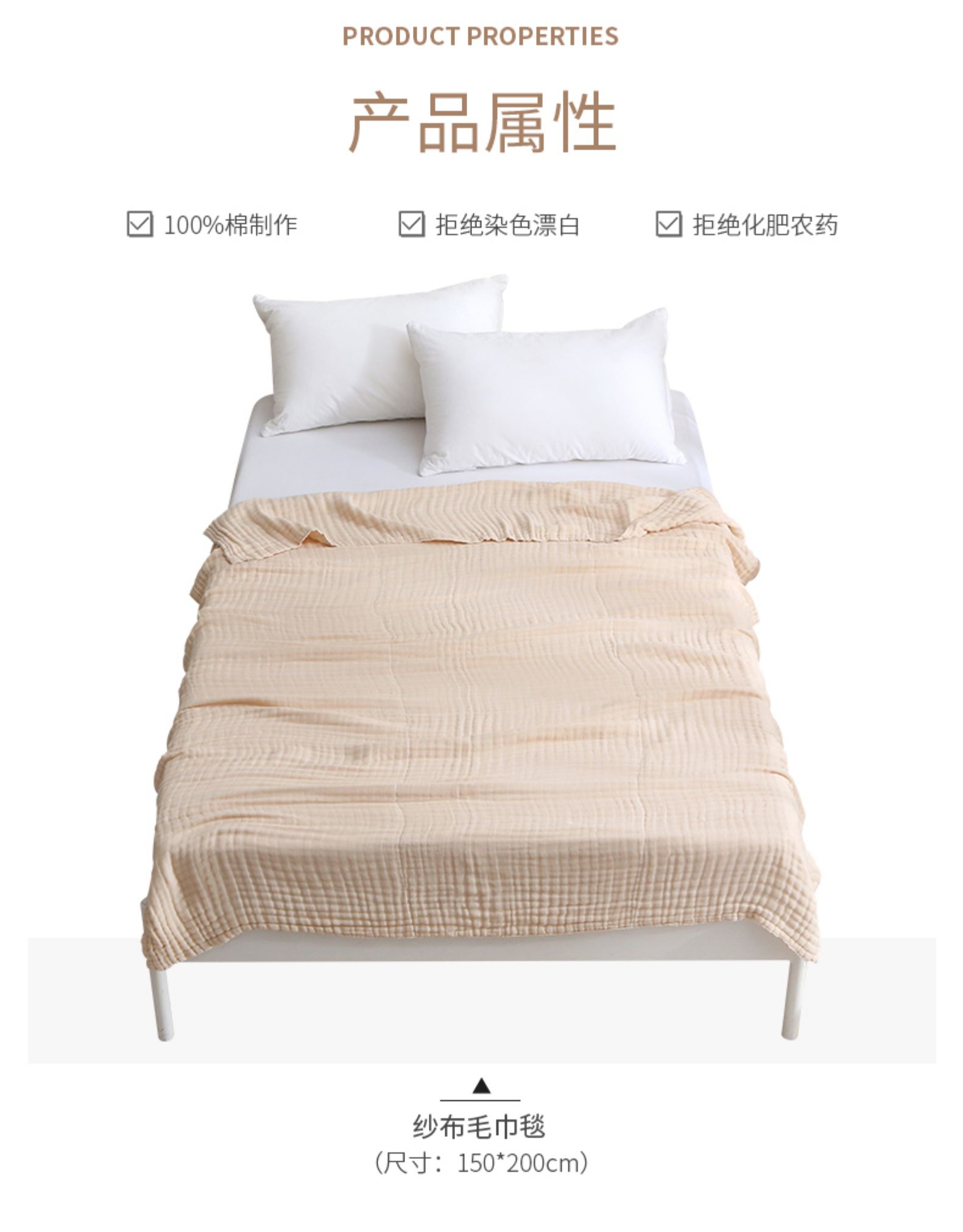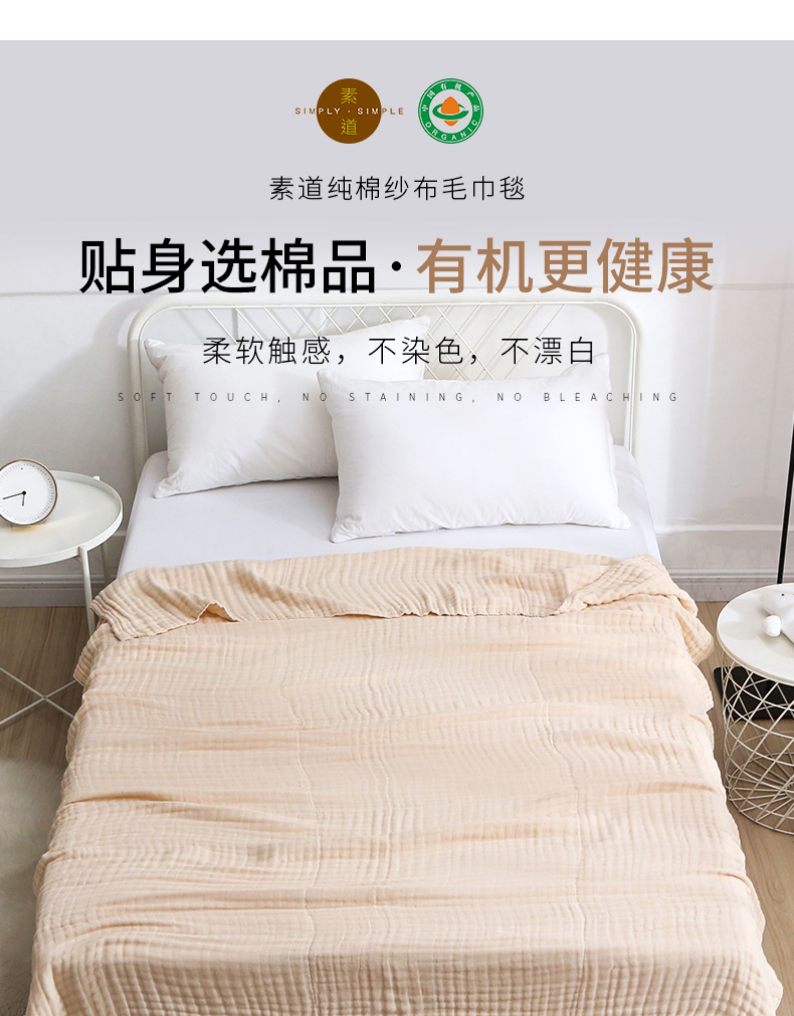 素道纱布毛巾毯天然有机棉 单人双人夏季午休盖毯 棉质薄款空调被【京东快递送货上门】