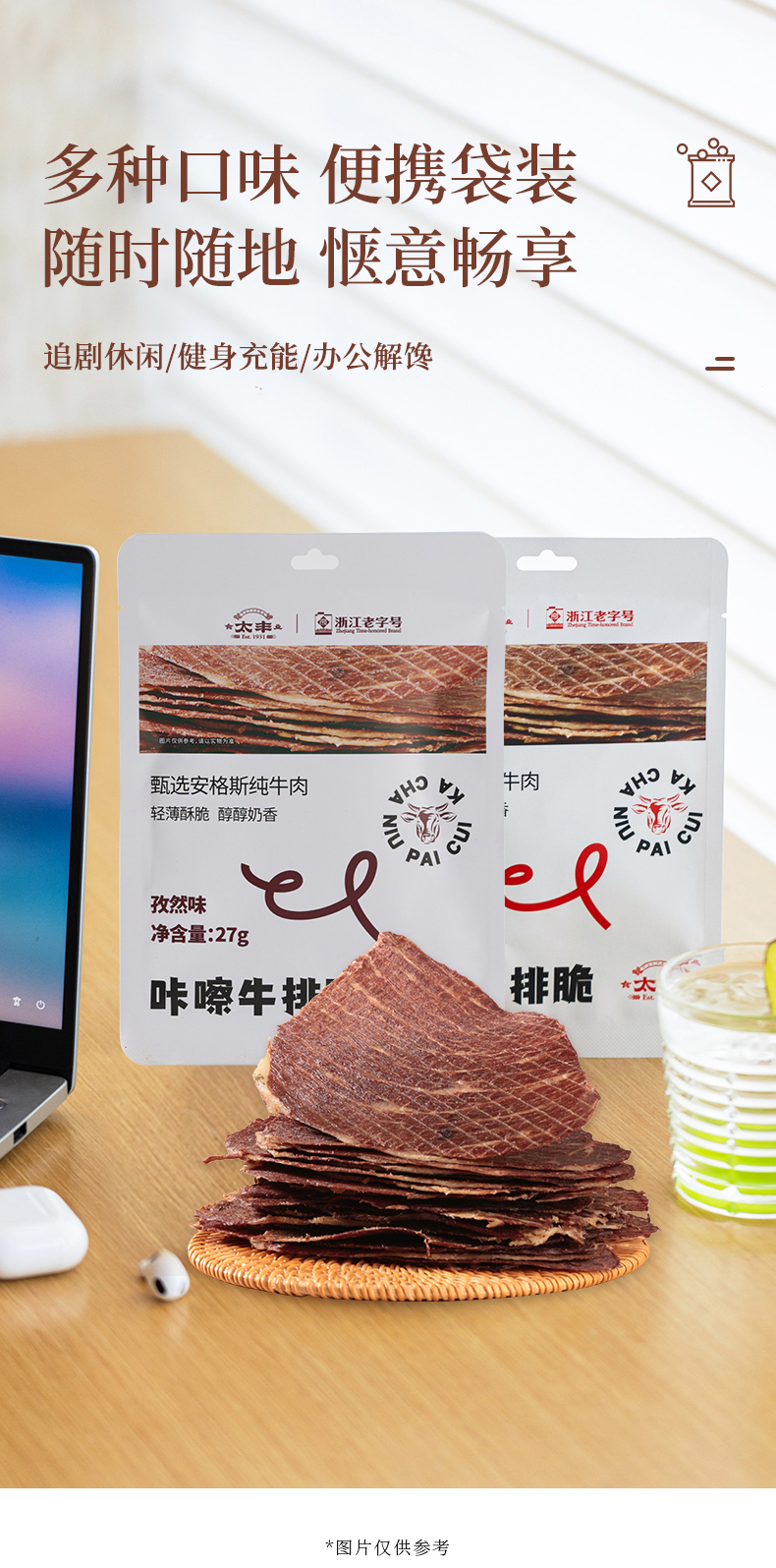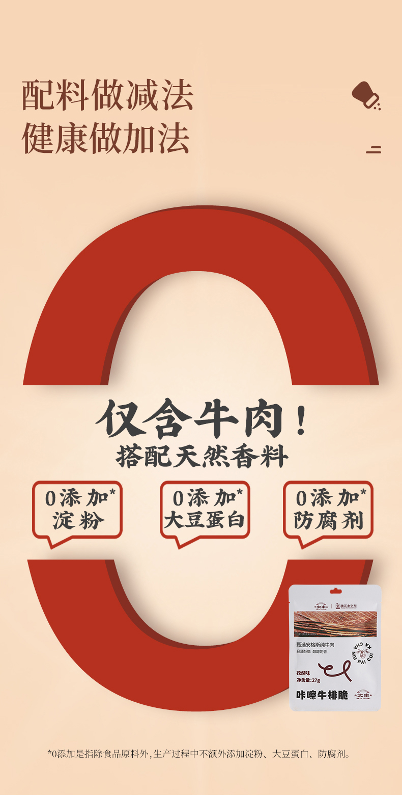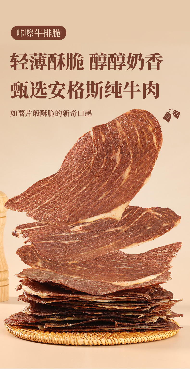 太丰食品咔嚓牛排脆孜然味安格斯牛肉脆办公休闲零食袋装27g