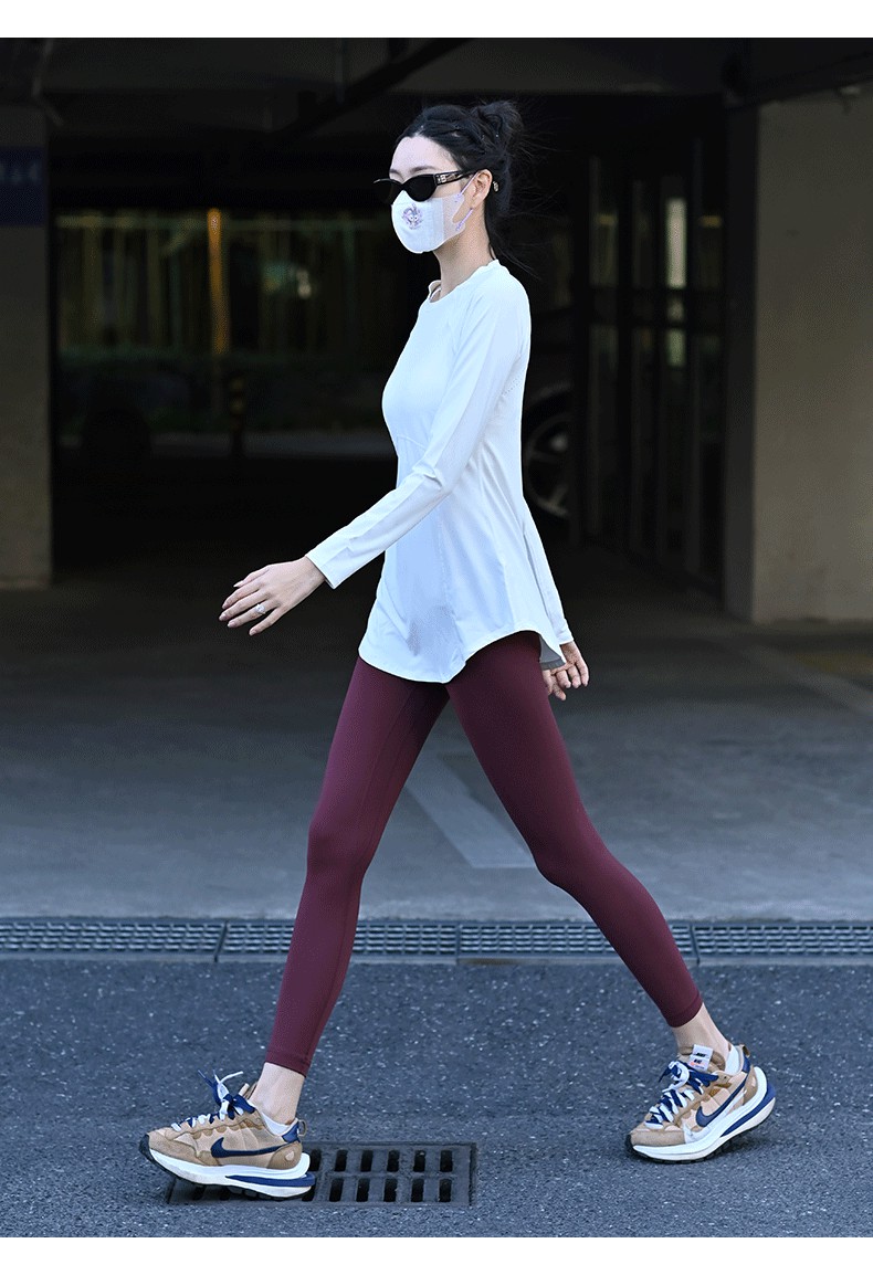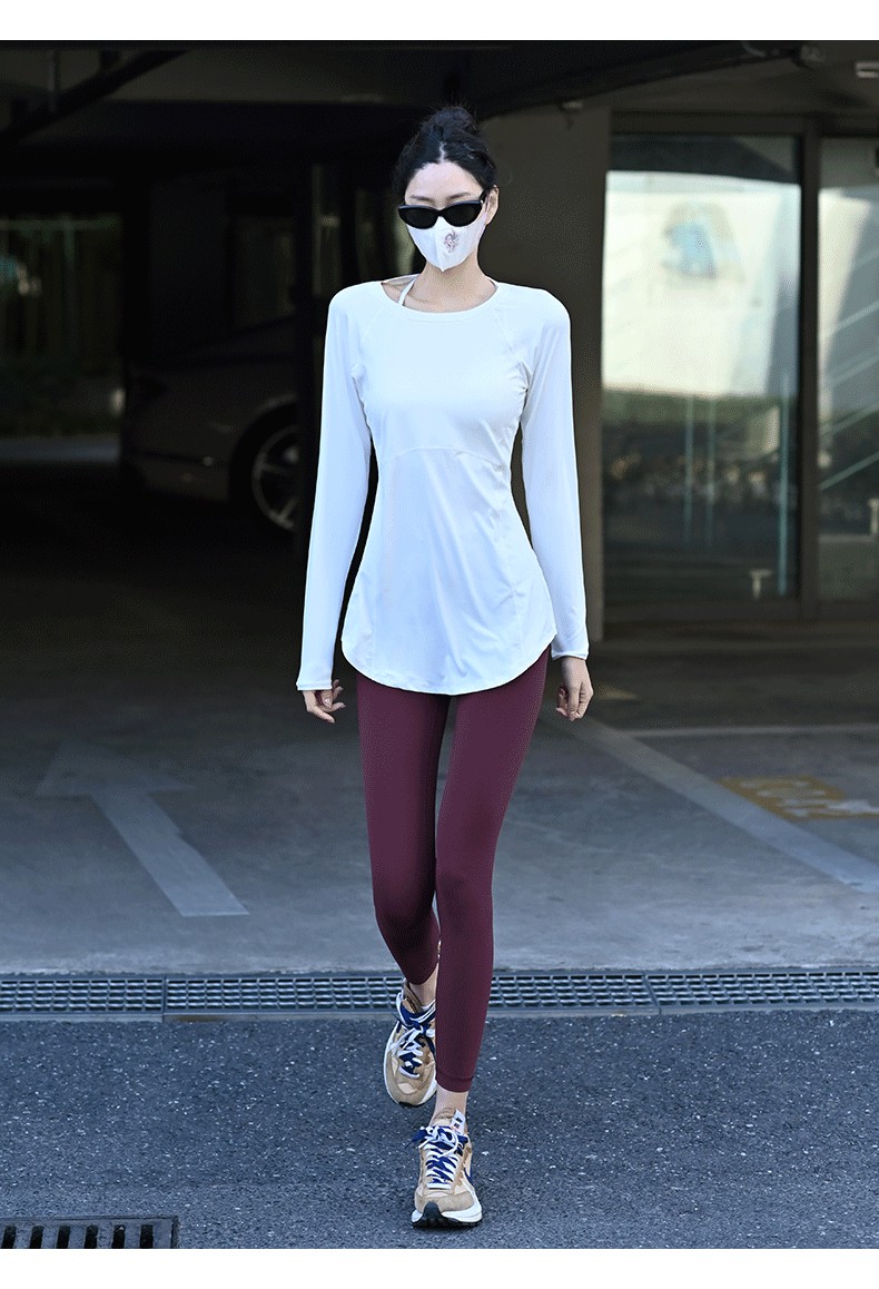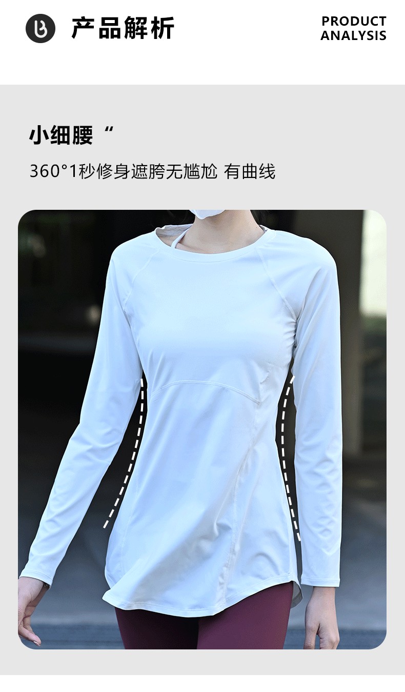 Beemen遮臀遮胯 修身长袖 弹力速干面料 暴汗不粘腻 运动长袖遮臀瑜伽服女训练户外健身上衣