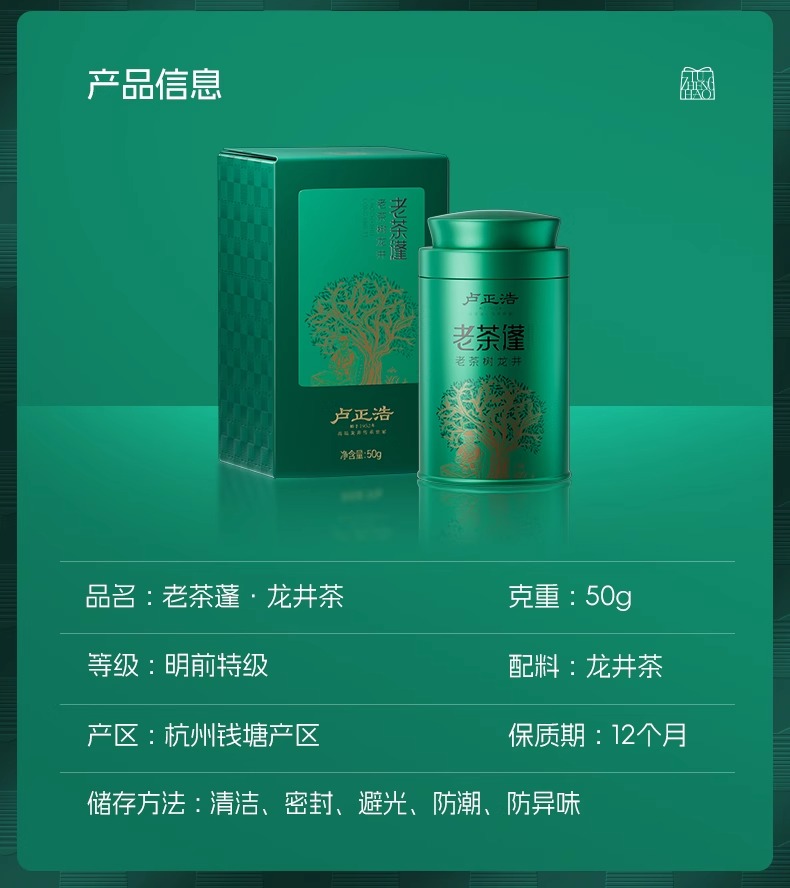 【群体种老茶树】2026新茶上市卢正浩老茶蓬明前特级龙井茶绿茶叶罐装