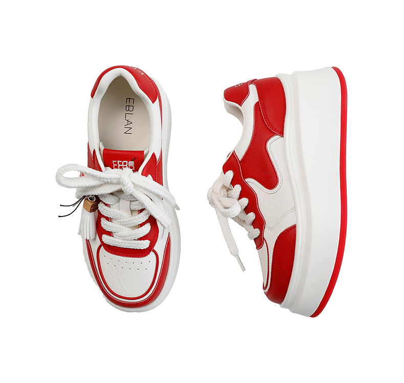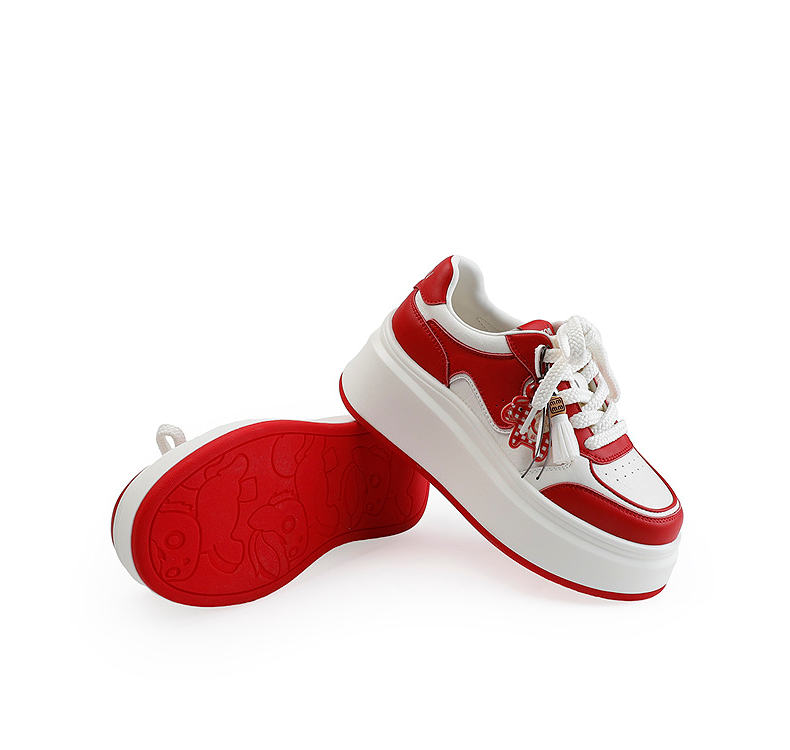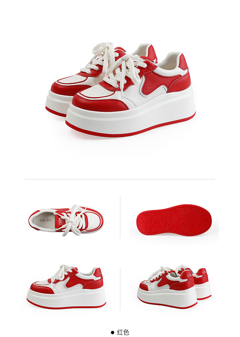 伊伴2026春季新年氛围感红色厚底休闲板鞋B26151250