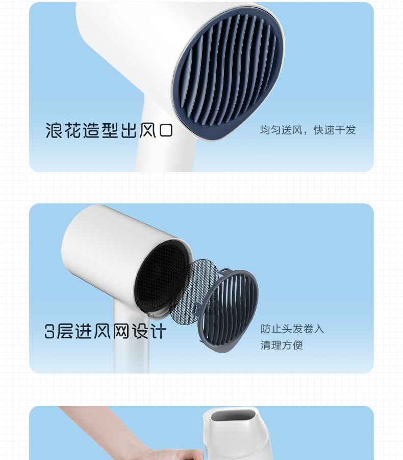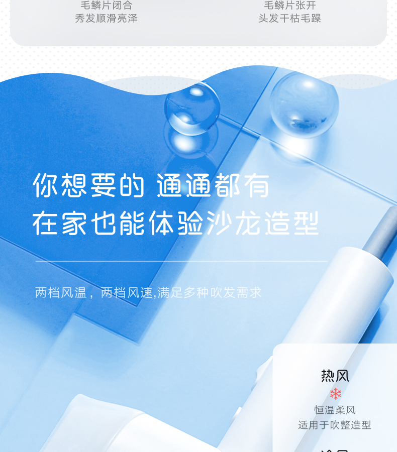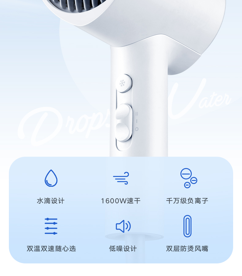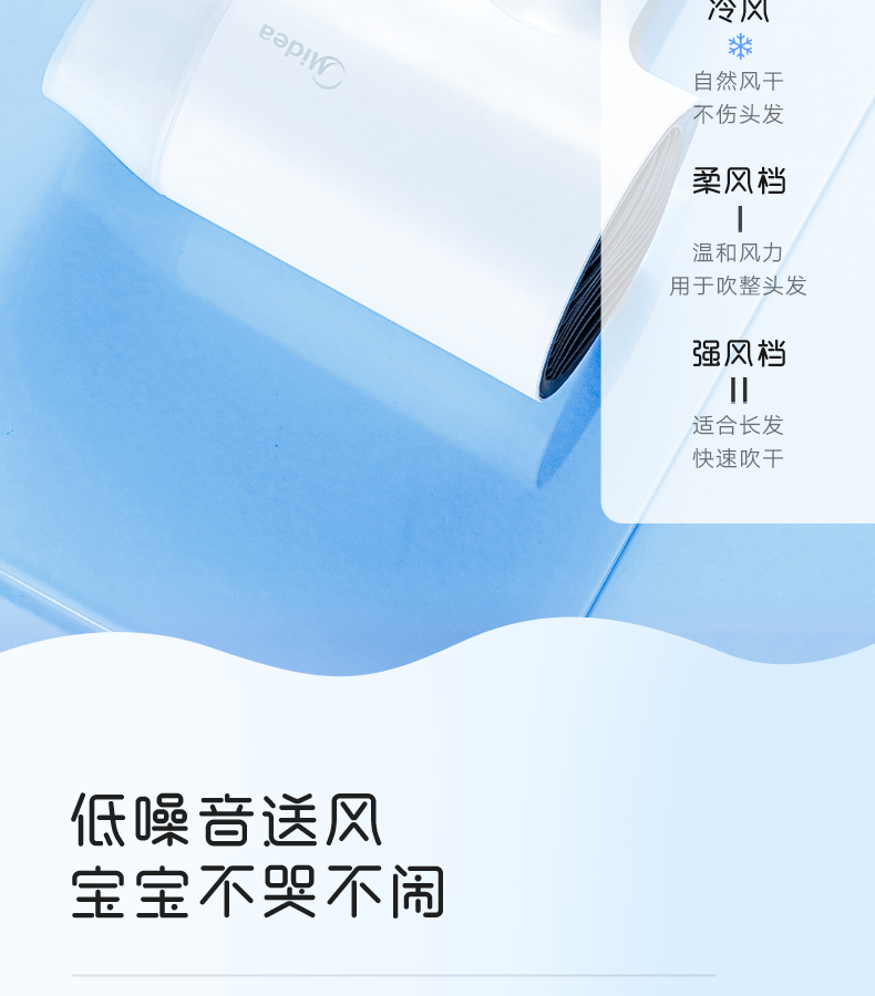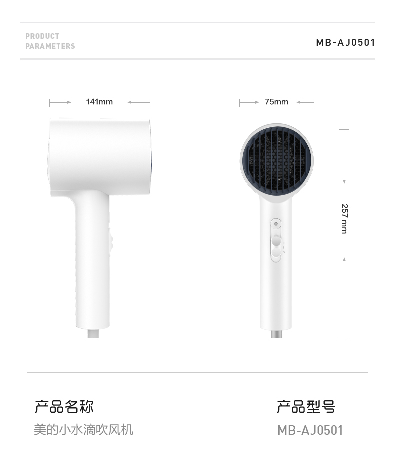 美的(Midea)小水滴智能恒温护发电吹风机 MB-AJ0501白色 恒温护发 秀发速干