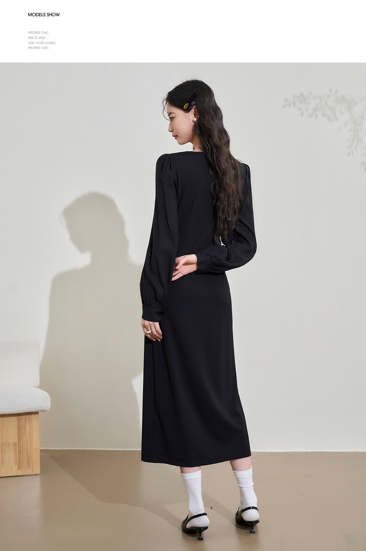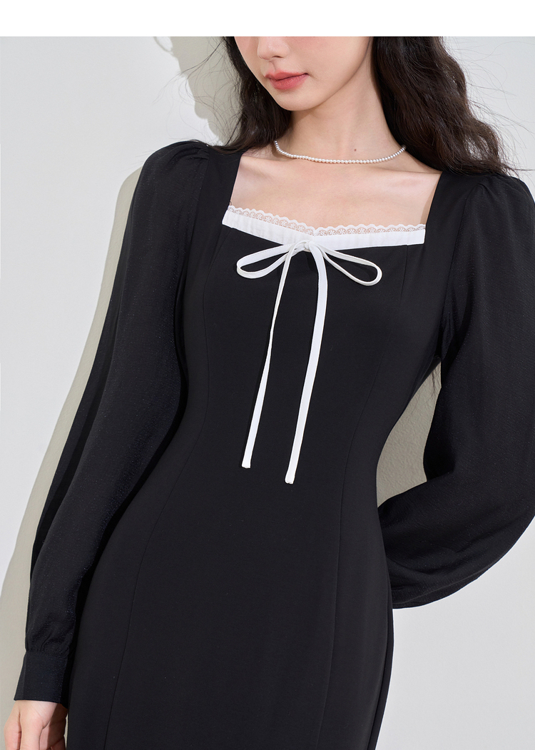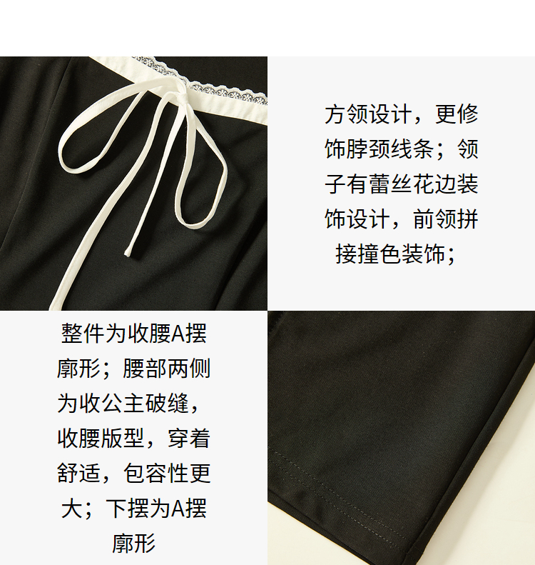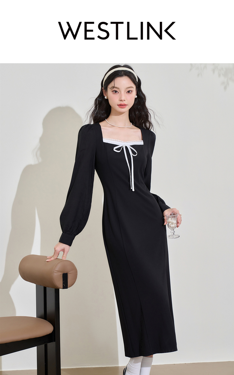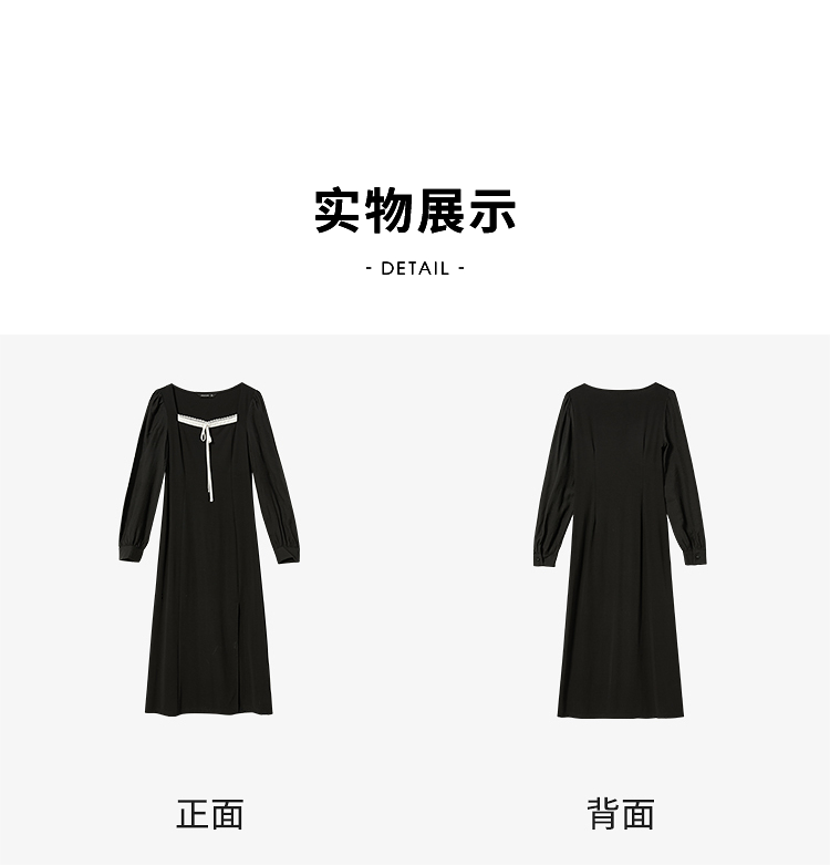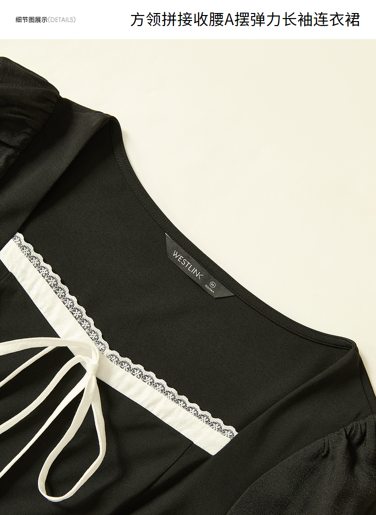 赫本风高级感浪漫复古长袖连衣裙女早春蕾丝花边拼接长裙V3342280